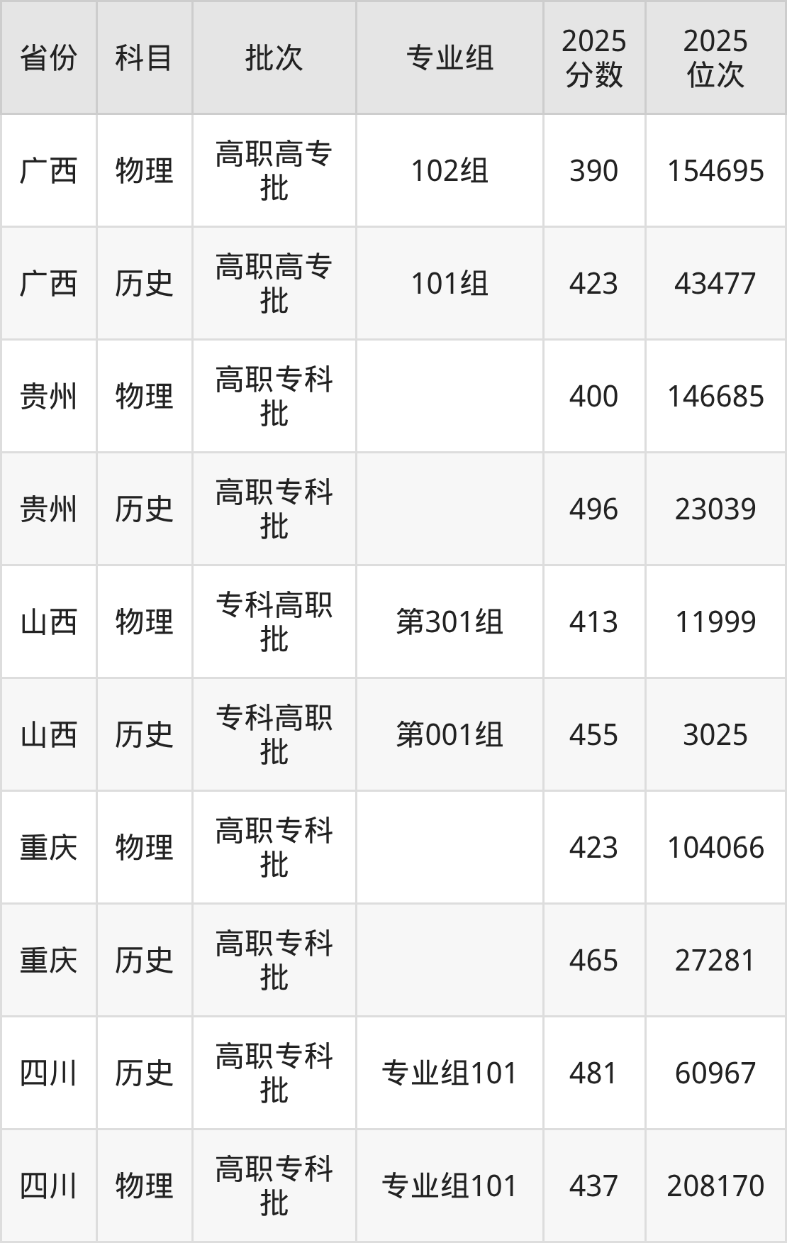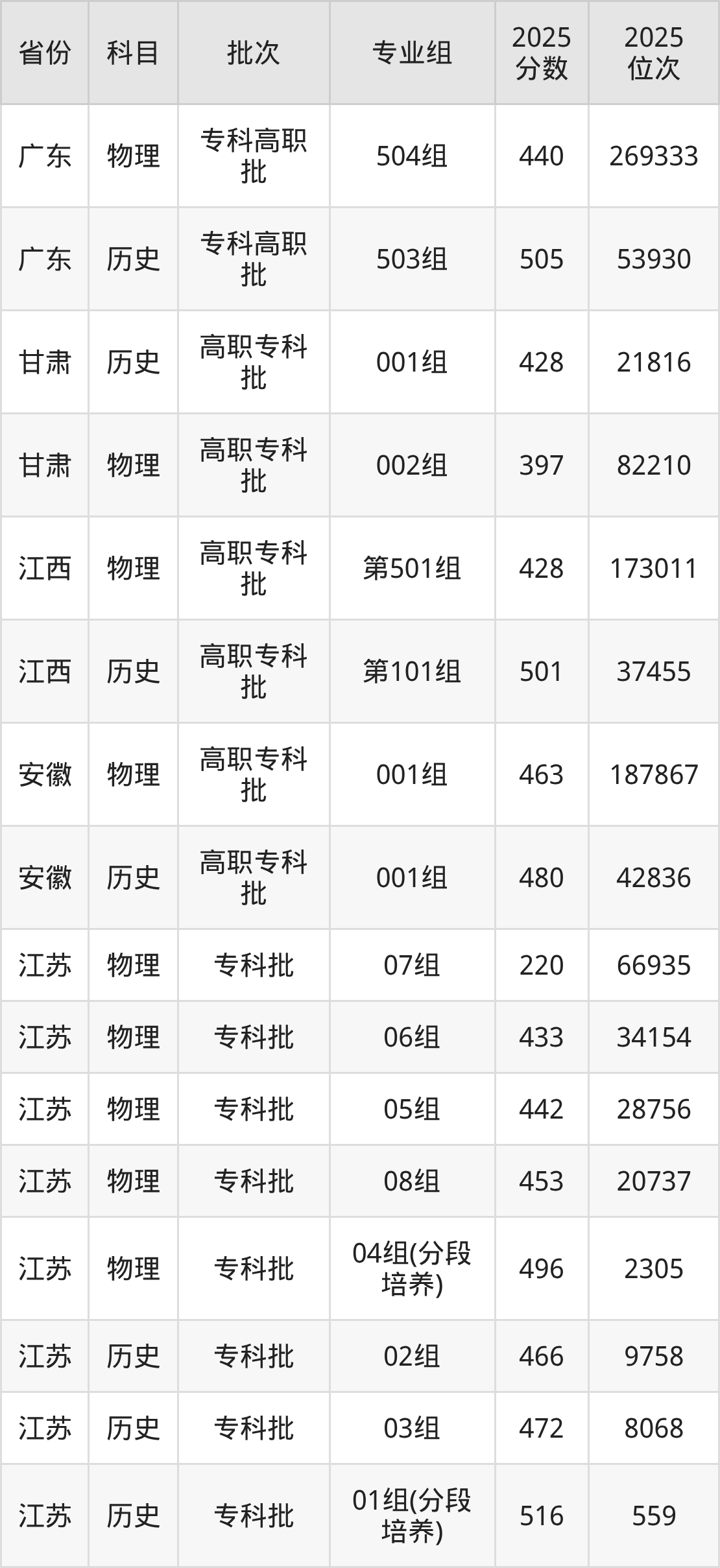 下面是2025年苏州卫生职业技术学院全国录取分数线一览表,请查阅。