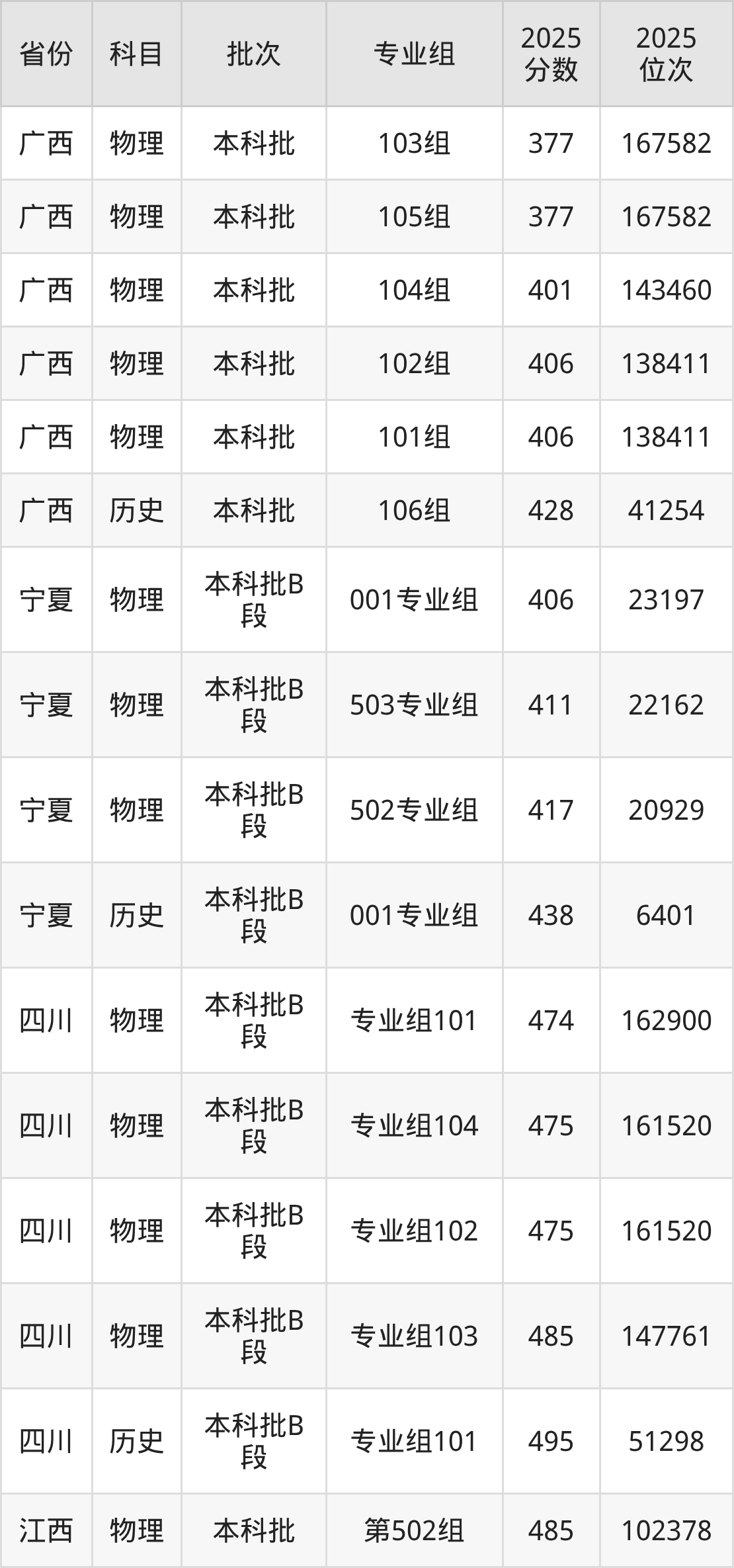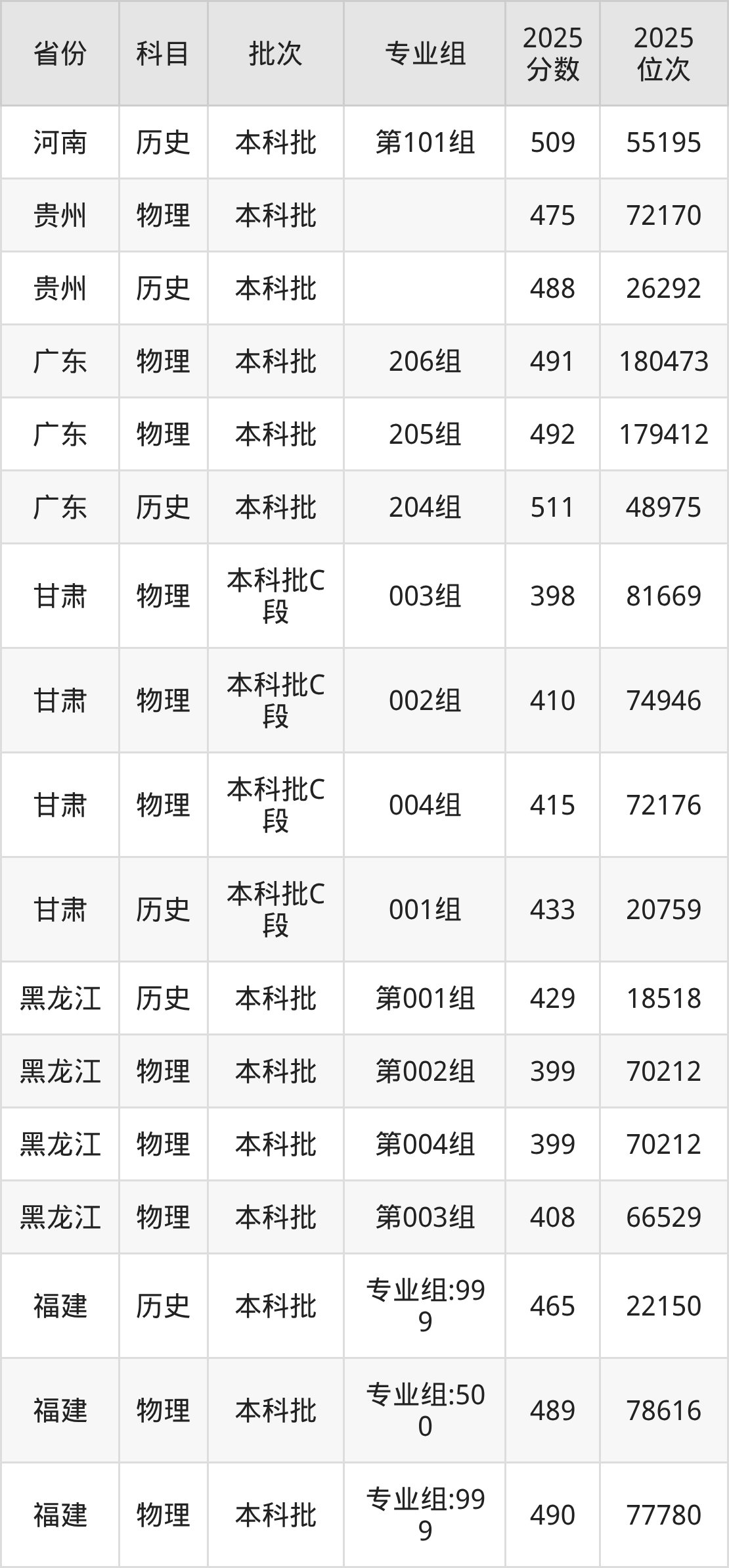 2025年投档录取最低分为475分,录取最低位次为72170名。