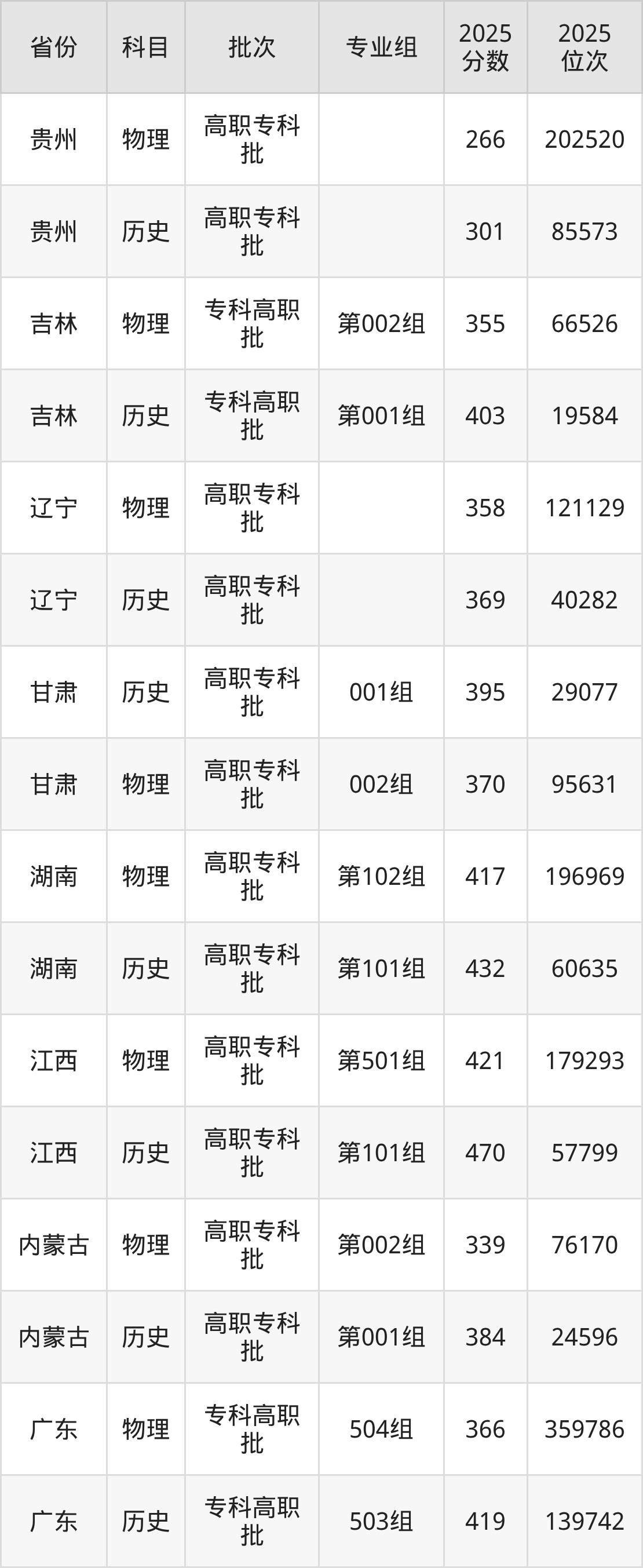 下面是2025年湖南水利水电职业技术学院全国录取分数线一览表,请查阅。