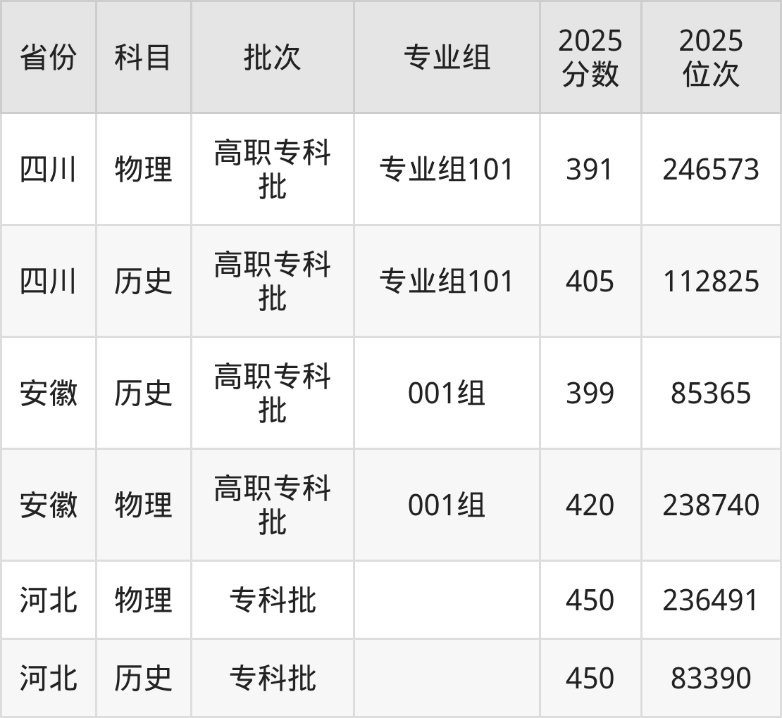 湖南水利水电职业技术学院专业组101:2025年投档录取最低分为391分,录取最低位次为246573名。