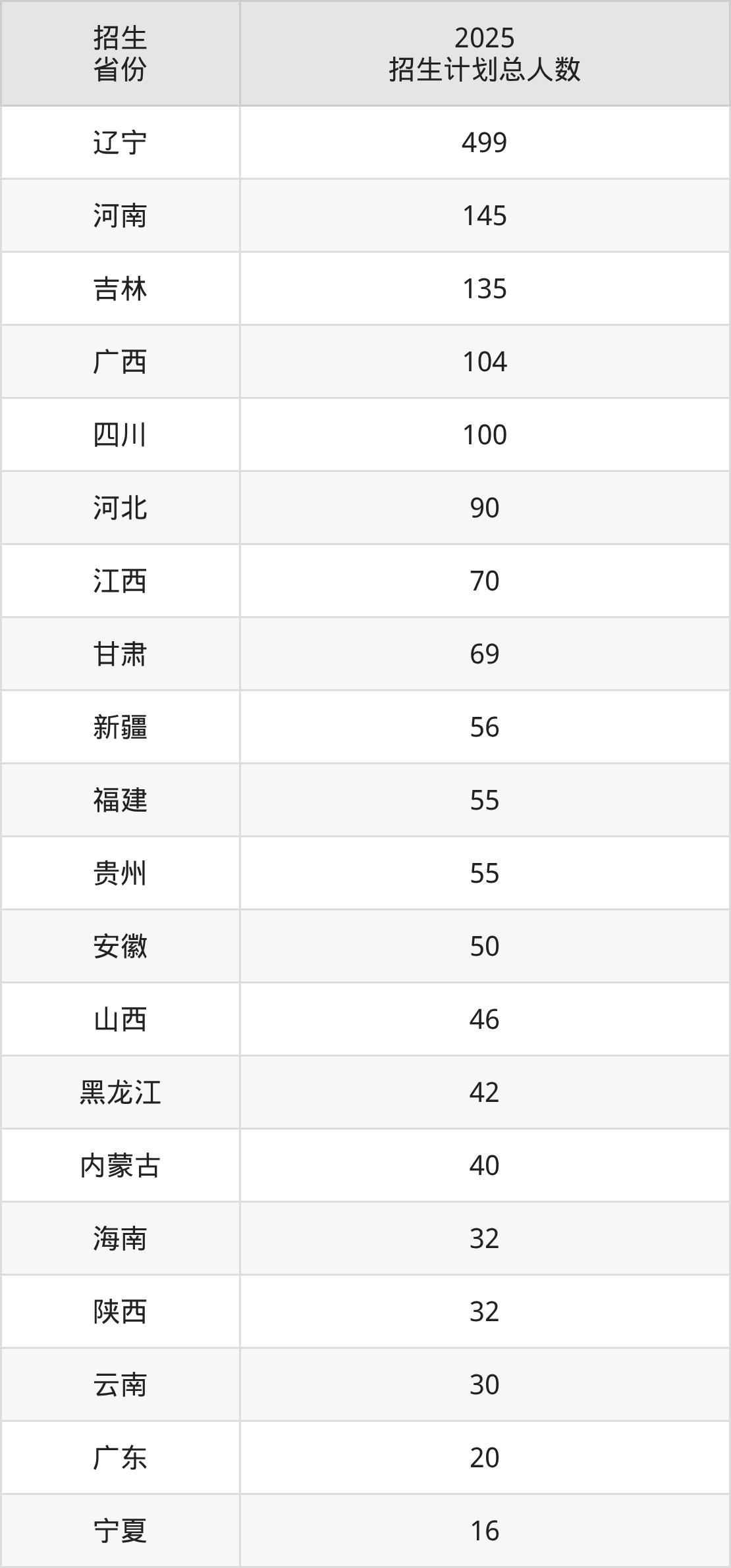 2025年辽宁中医药大学杏林学院面向全国22个省市开展本科招生;招生专业共12个,招生人数共1703人。2025年在辽宁省招生计划总人数是499人,其中,辽宁中医药大学杏林学院在辽宁省招生人数最多的是中医学。辽宁中医药大学杏林学院在各省具体招生人数情况如下表。