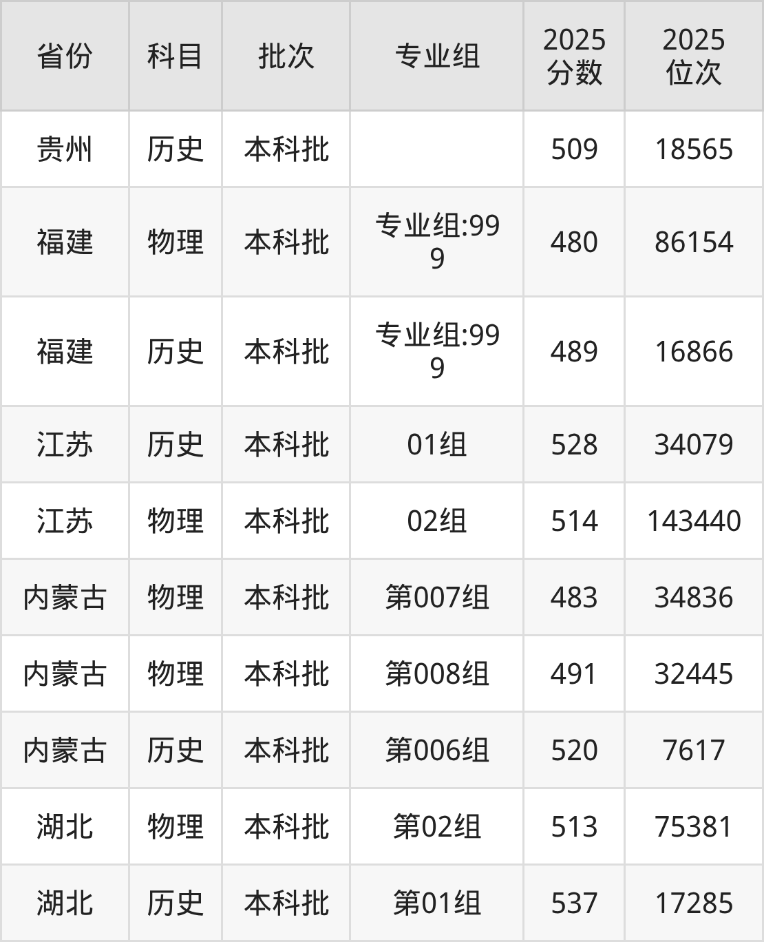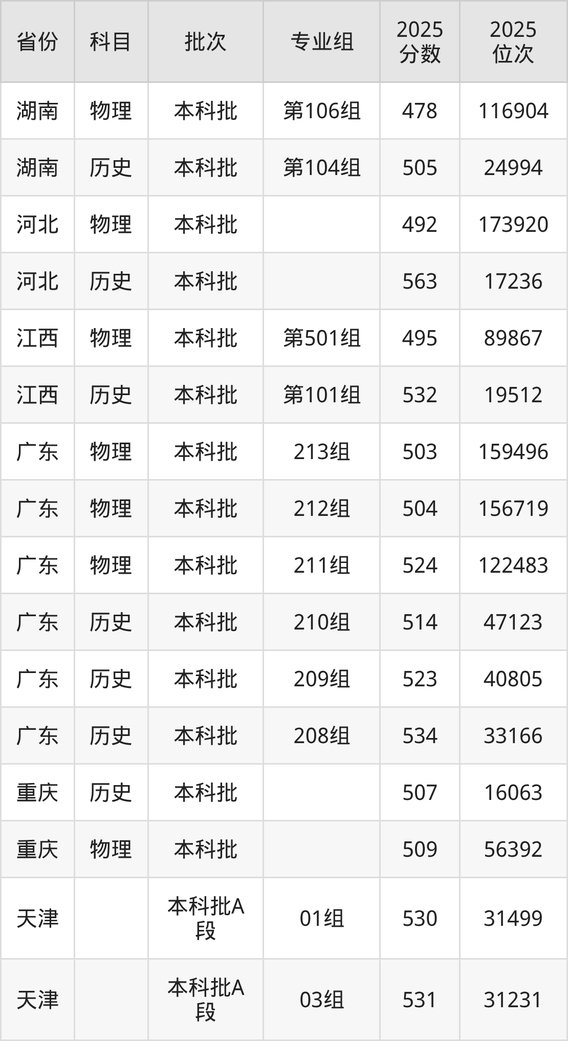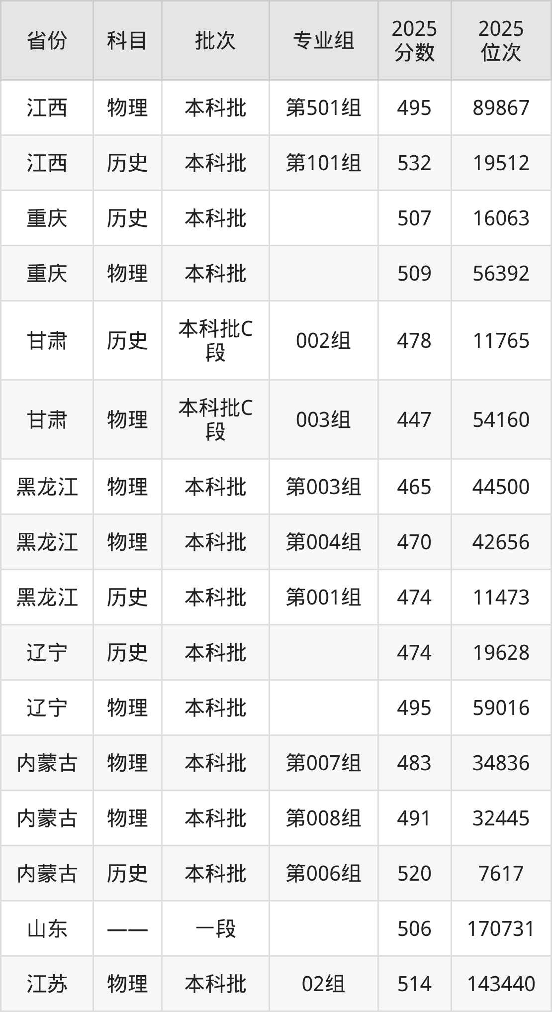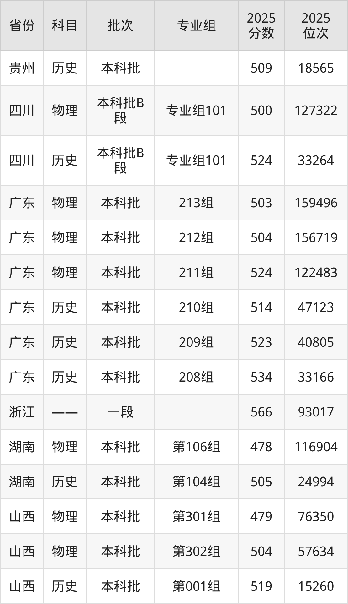 2025年投档录取最低分为509分,录取最低位次为18565名。