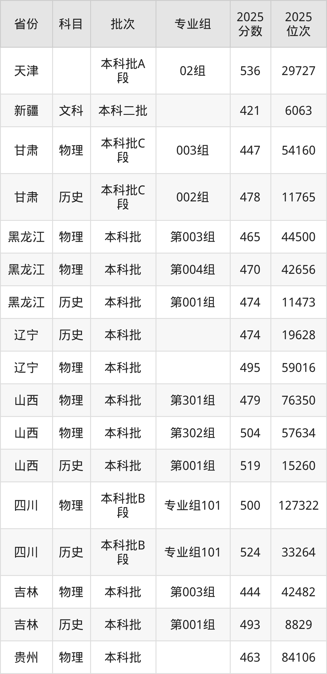 2025年投档录取最低分为463分,录取最低位次为84106名。