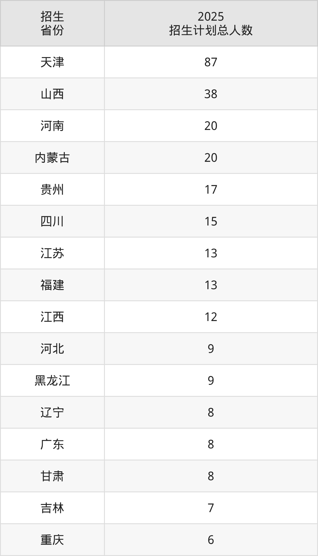 2025年天津体育学院面向全国20个省市开展本科招生;招生专业共11个,招生人数共303人。