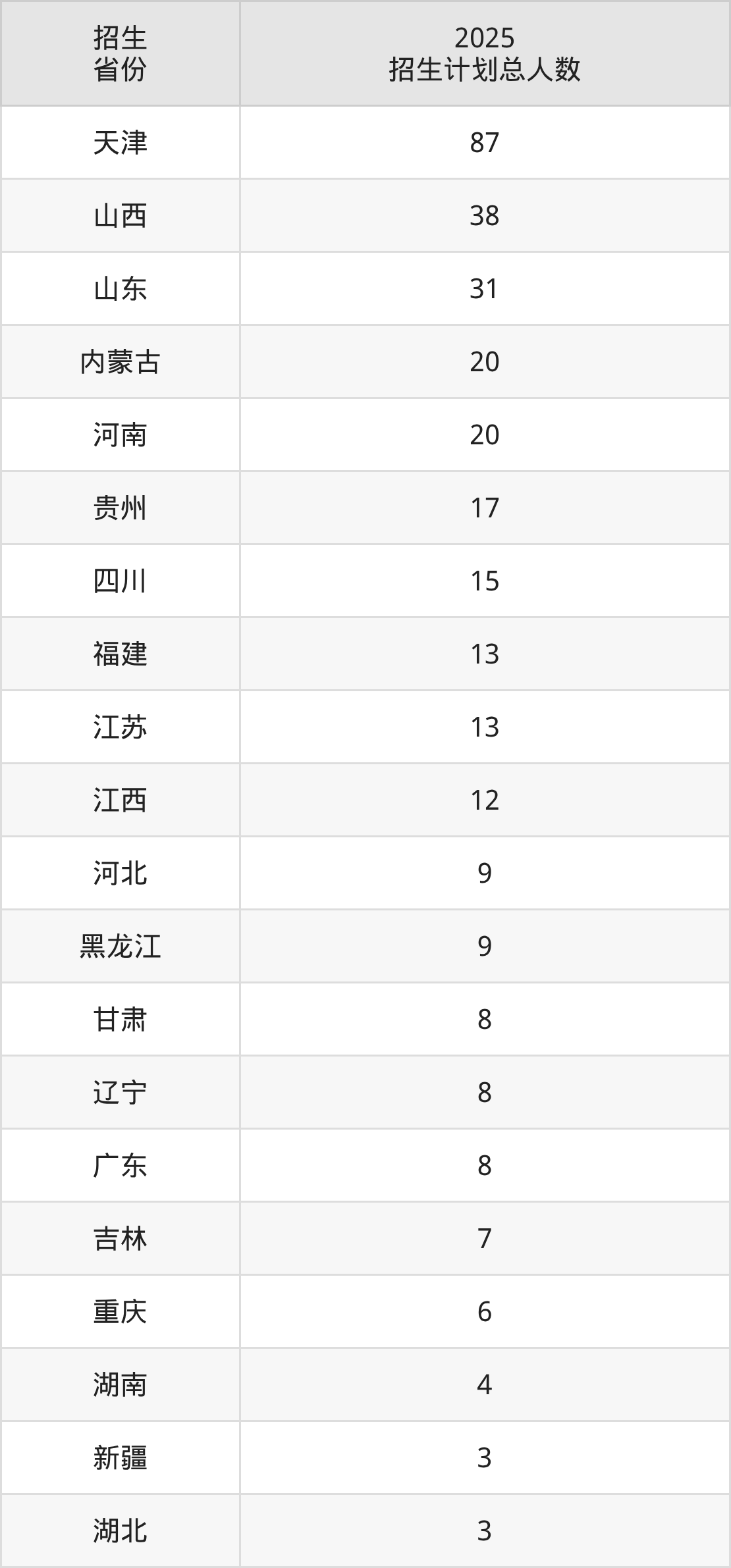 2025年天津体育学院面向全国20个省市开展本科招生;招生专业共10个,招生人数共331人。