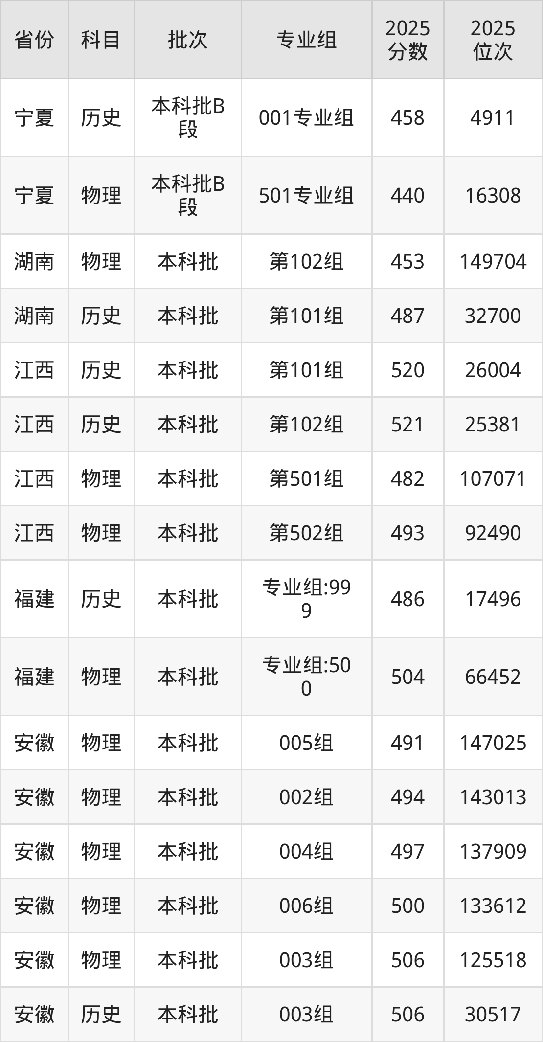 池州学院001专业组:2025年投档录取最低分为458分,录取最低位次为4911名。