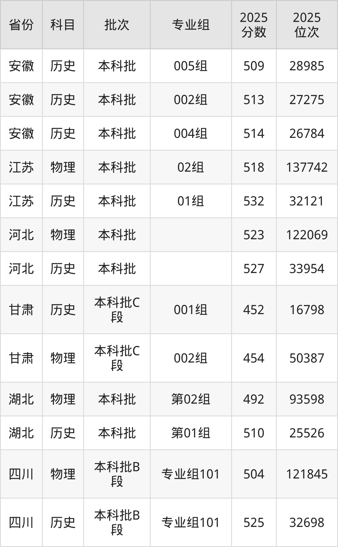 池州学院专业组101:2025年投档录取最低分为525分,录取最低位次为32698名。