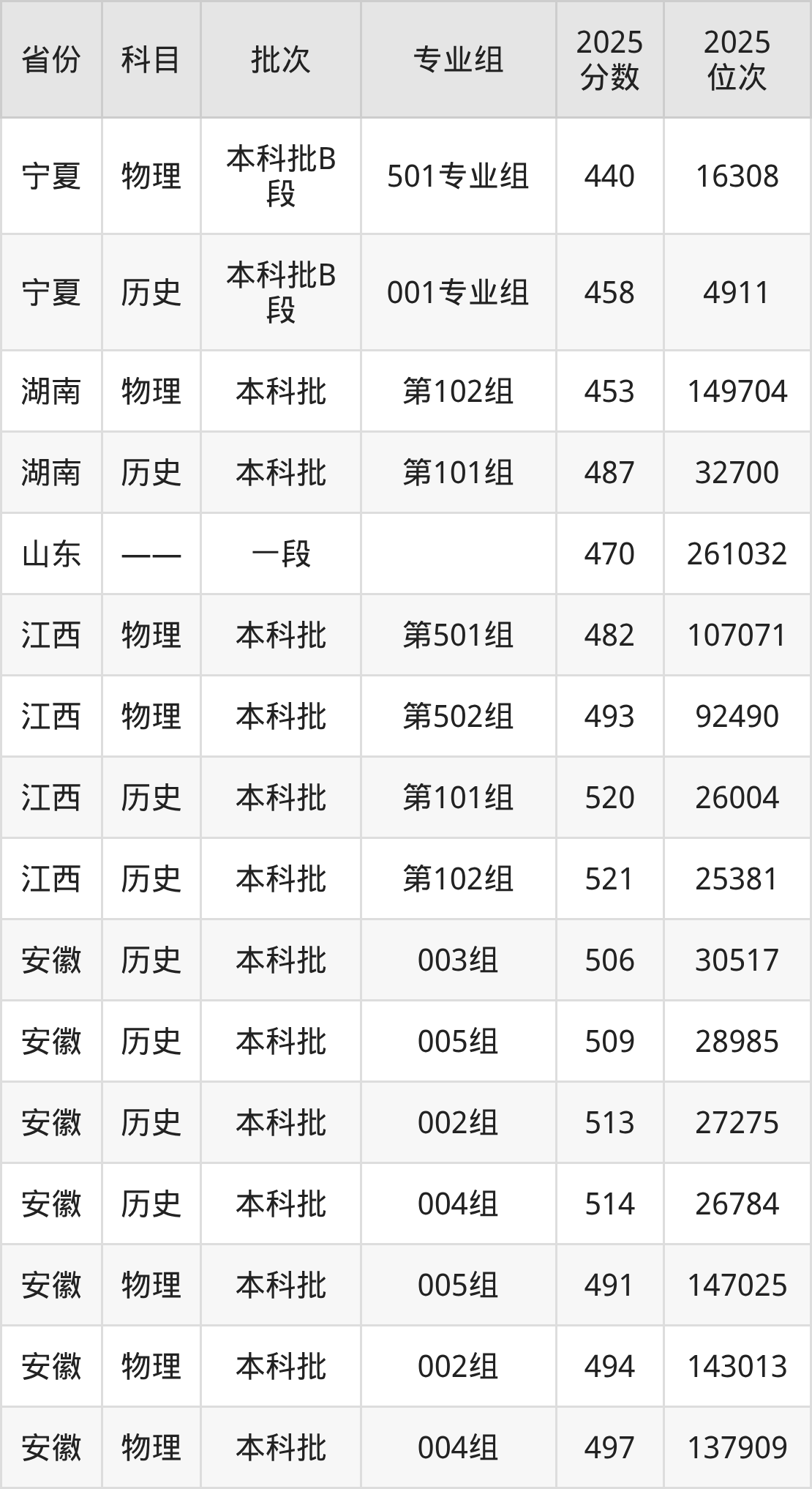 2025年池州学院全国录取分数线是440分到532分,录取最低在宁夏物理类(501专业组)、录取最高在江苏历史类(01组)。各省各专业组最低分具有差异,详情如下: