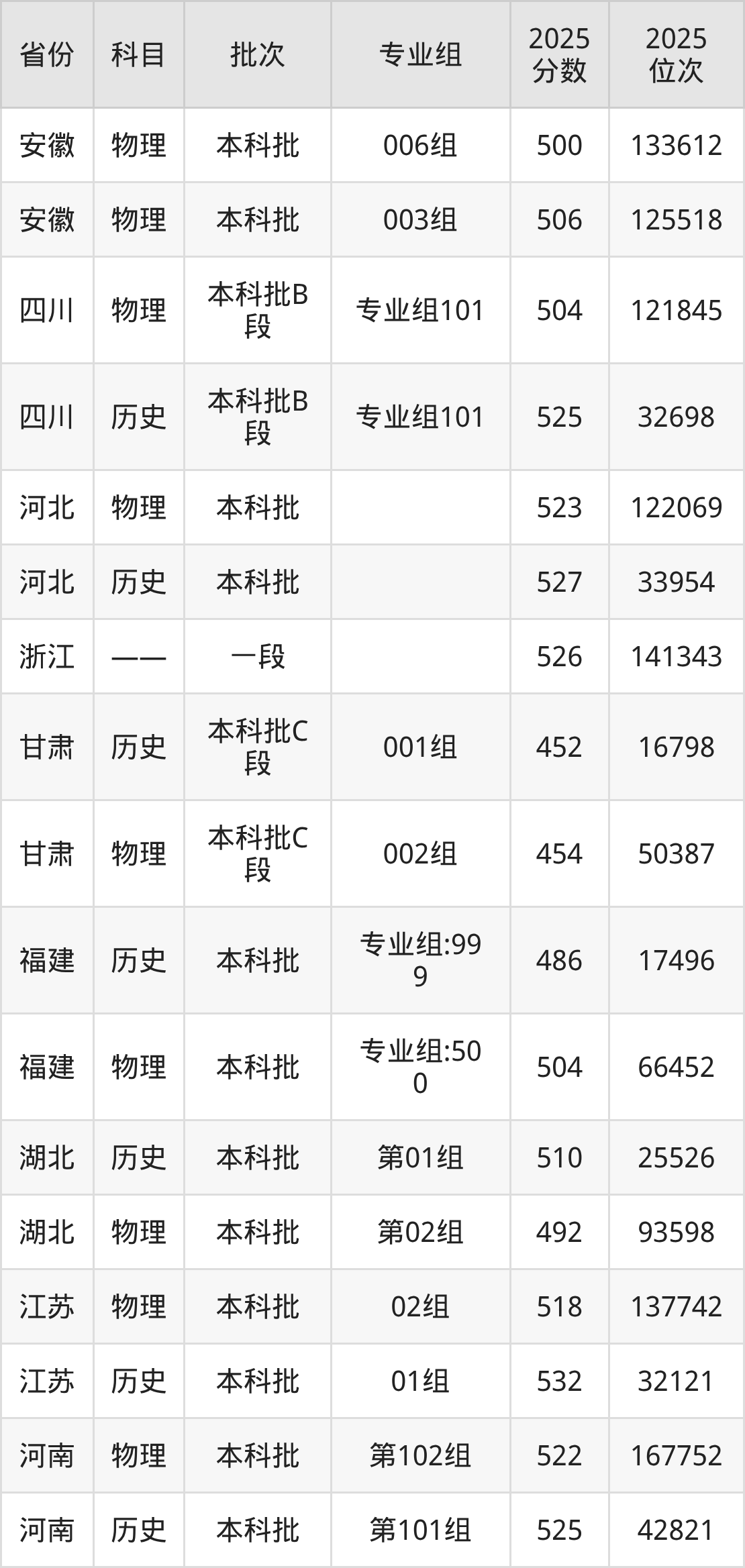 普通类本科历史类最低486分,本科物理类最低504分