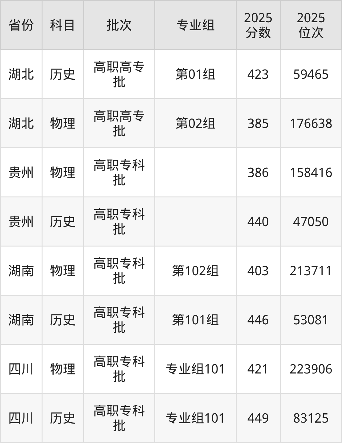 漳州职业技术学院专业组101:2025年投档录取最低分为449分,录取最低位次为83125名。