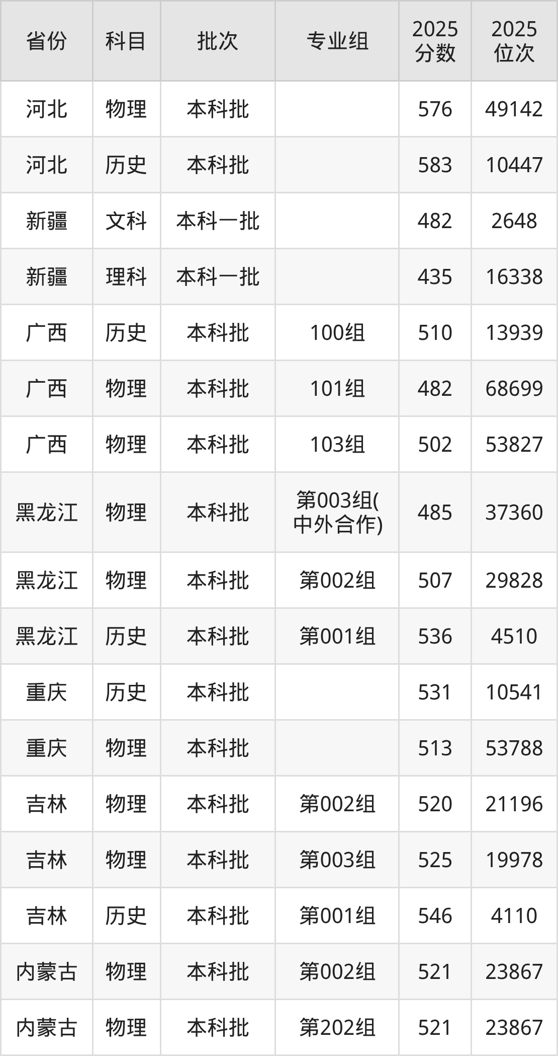 北京物资学院051组(中外合作办学):2025年投档录取最低分为484分,录取最低位次为158412名。