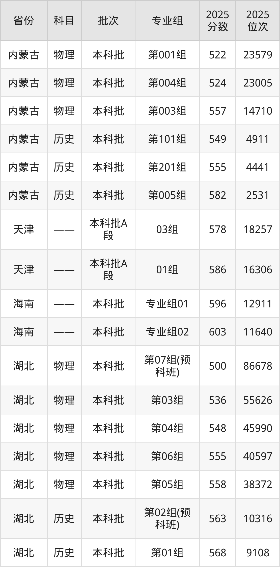 2025年投档录取最低分为554分,录取最低位次为31013名。