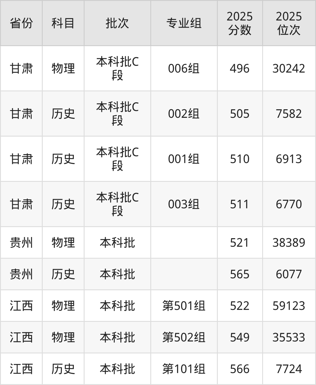 2025年投档录取最低分为565分,录取最低位次为6077名。