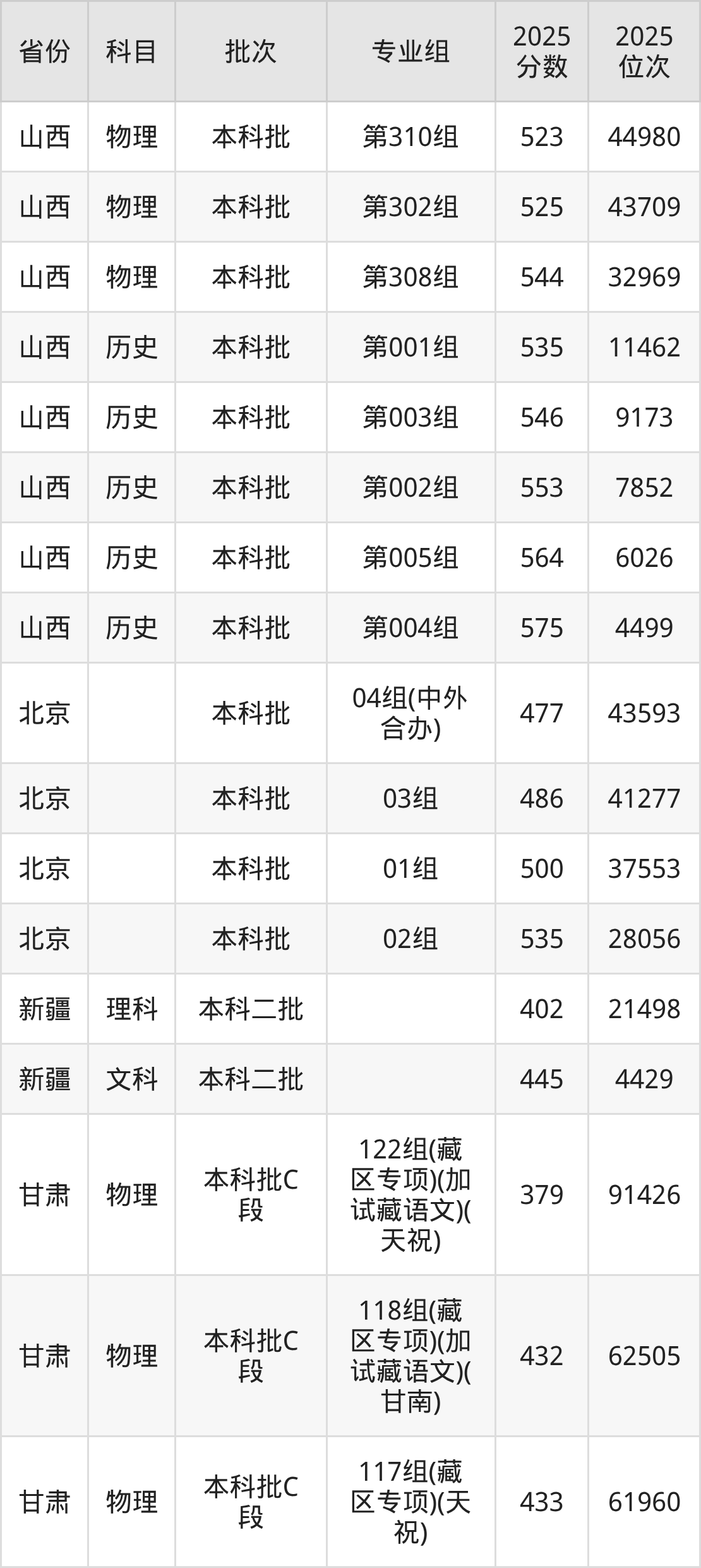 下面是2025年西北师范大学全国录取分数线一览表,请查阅。