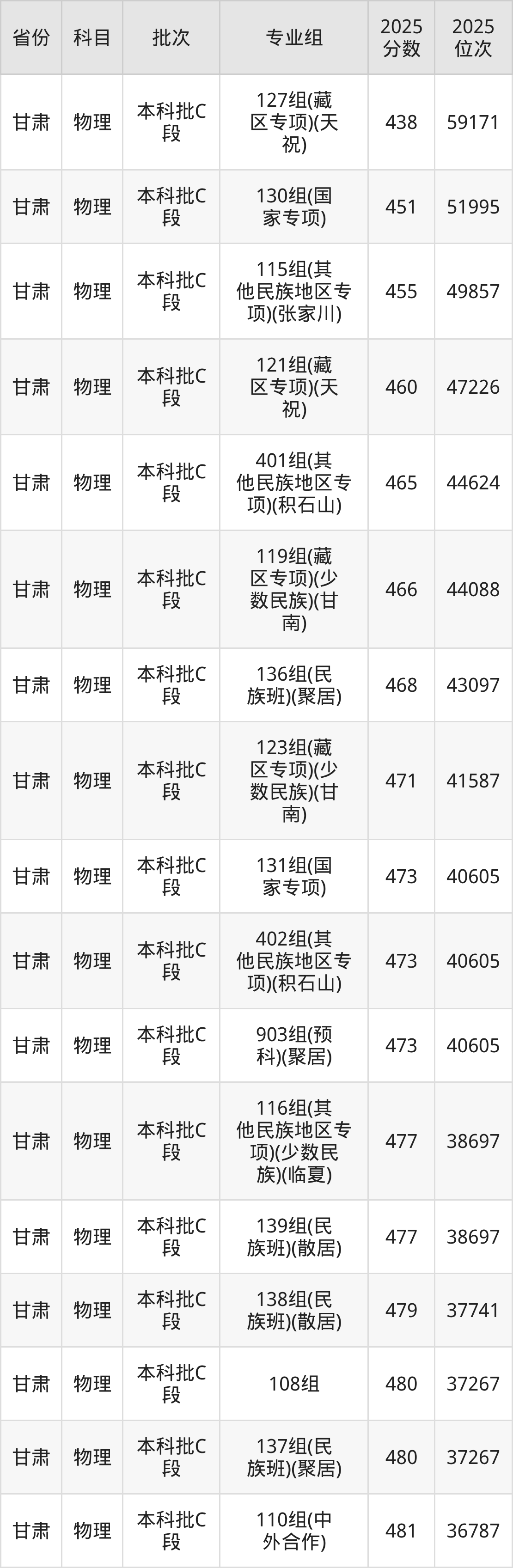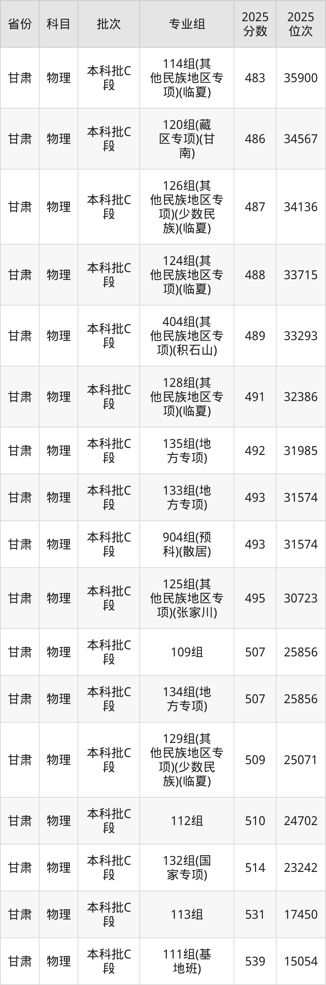 西北师范大学第114组:2025年投档录取最低分为455分,录取最低位次为147026名。