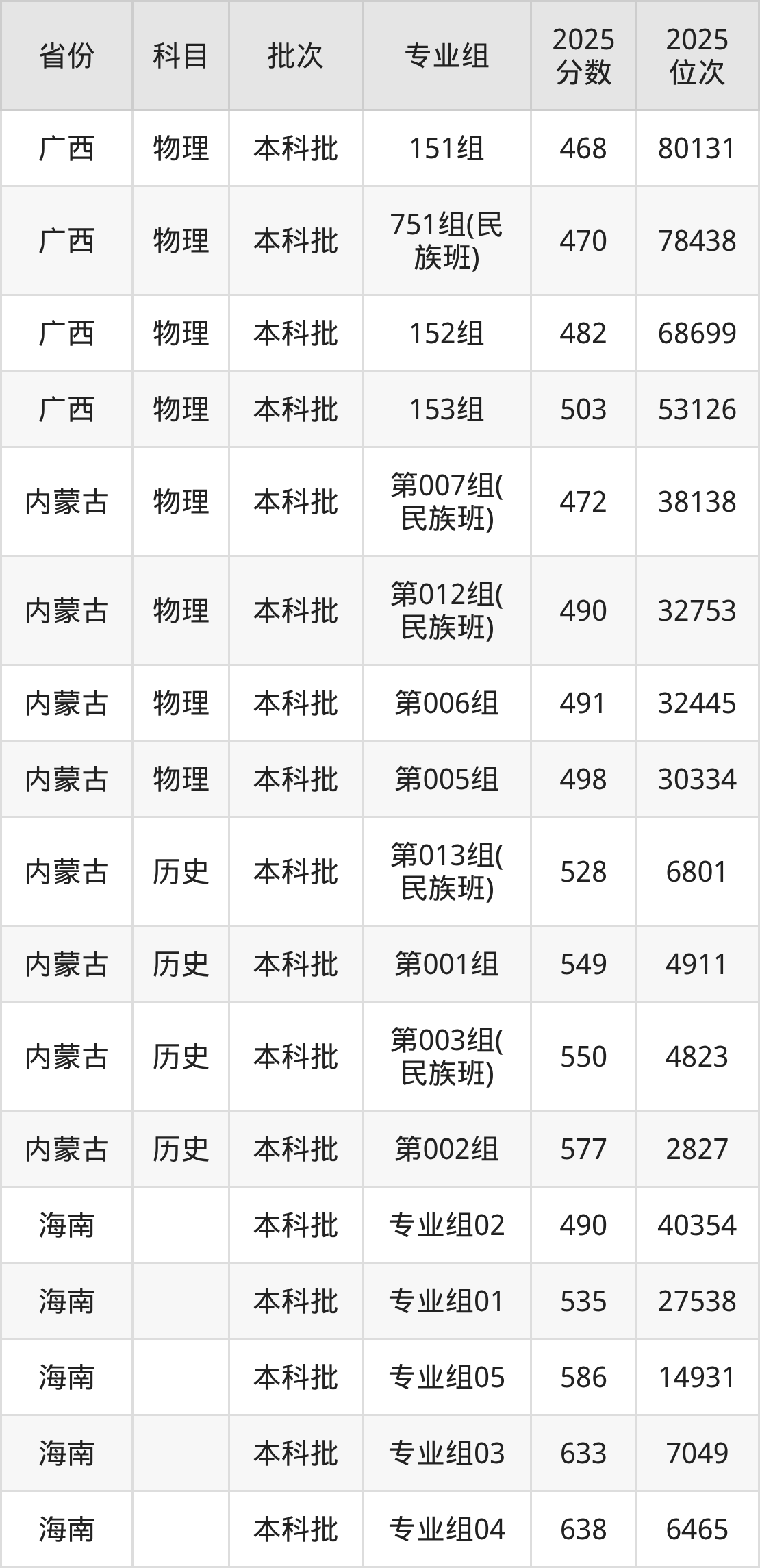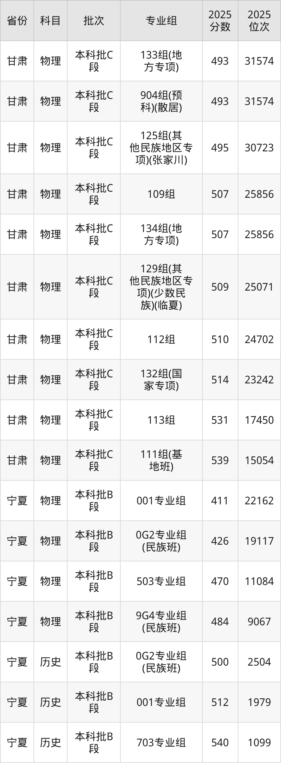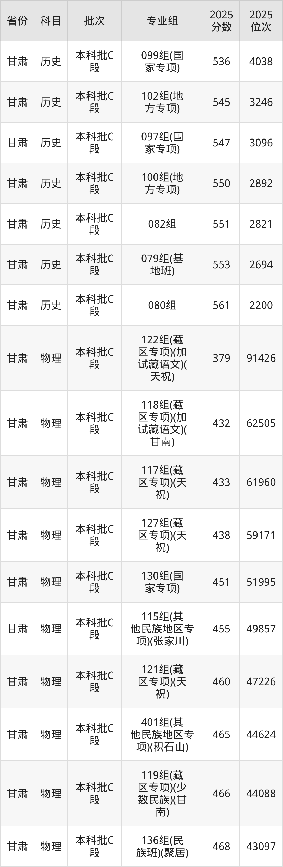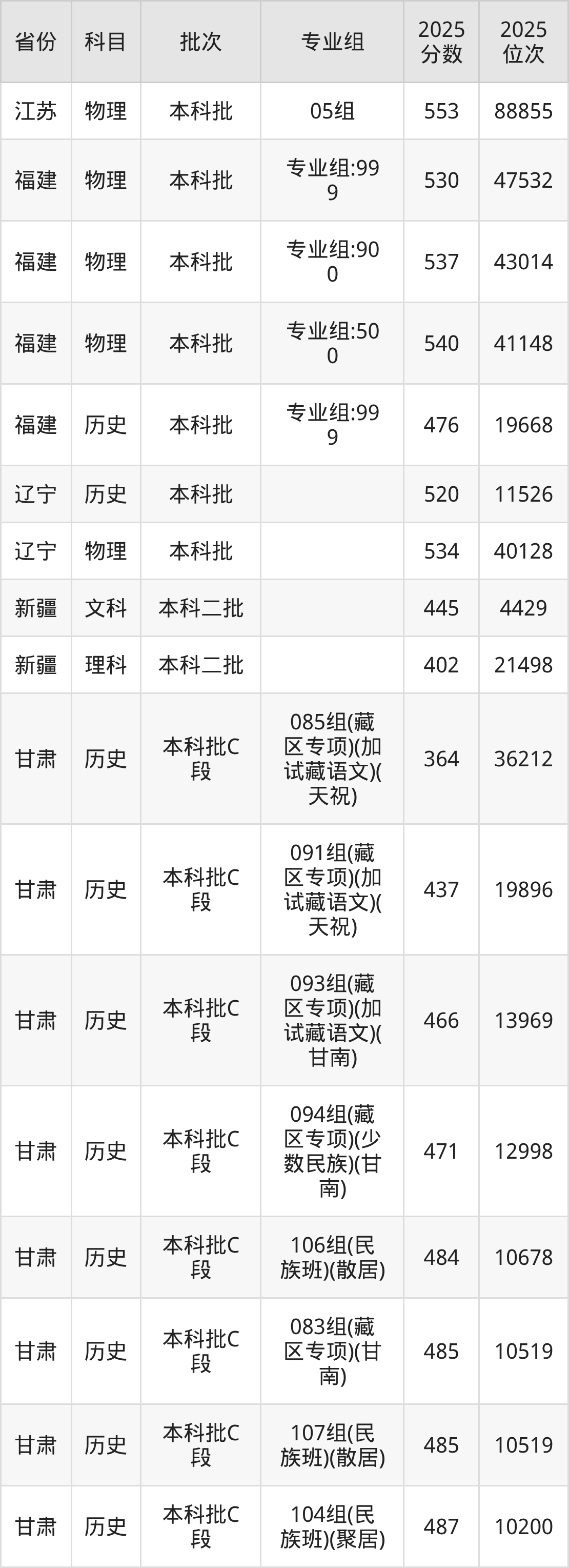 西北师范大学第012组(民族班):2025年投档录取最低分为490分,录取最低位次为32753名。