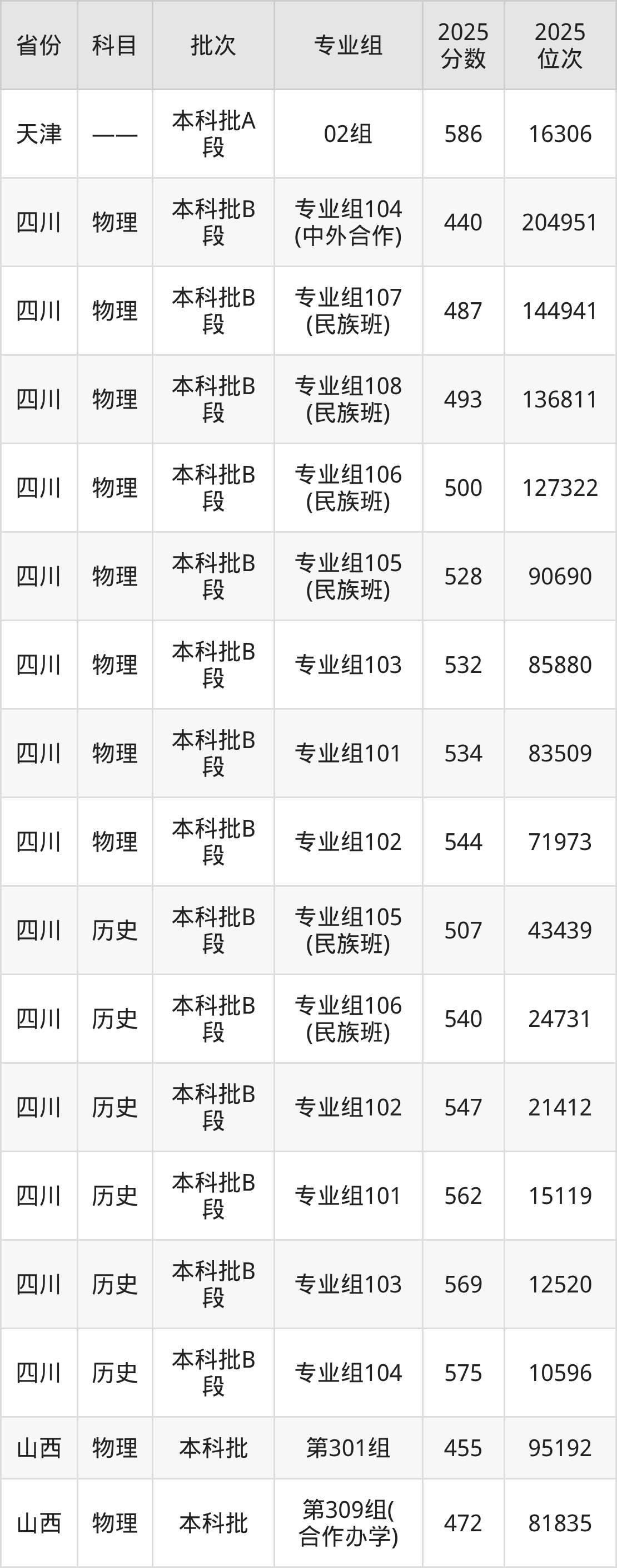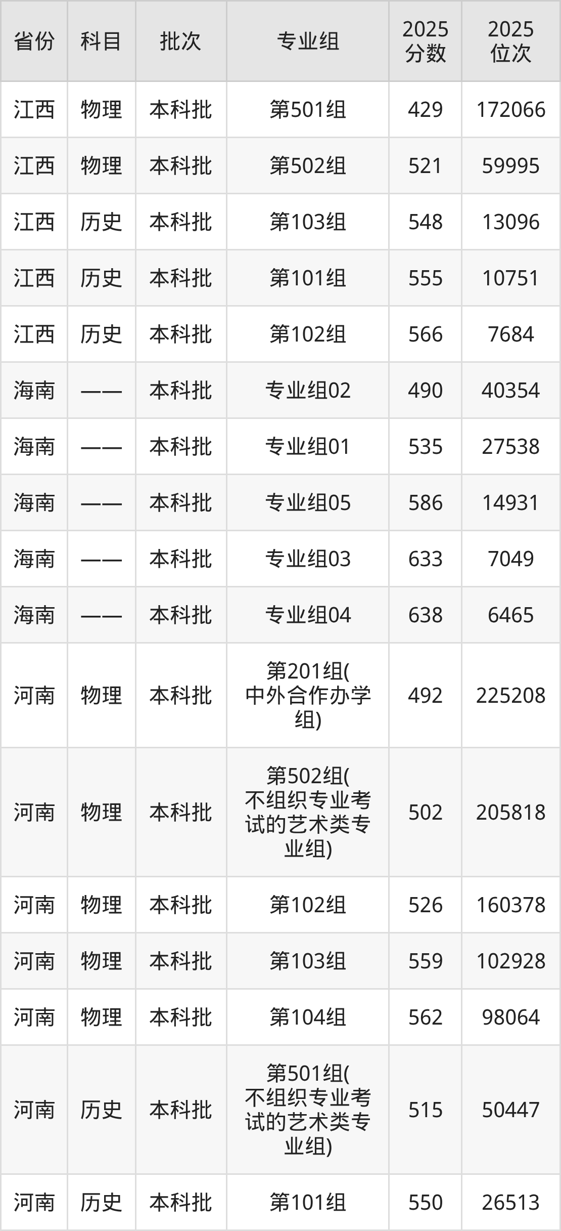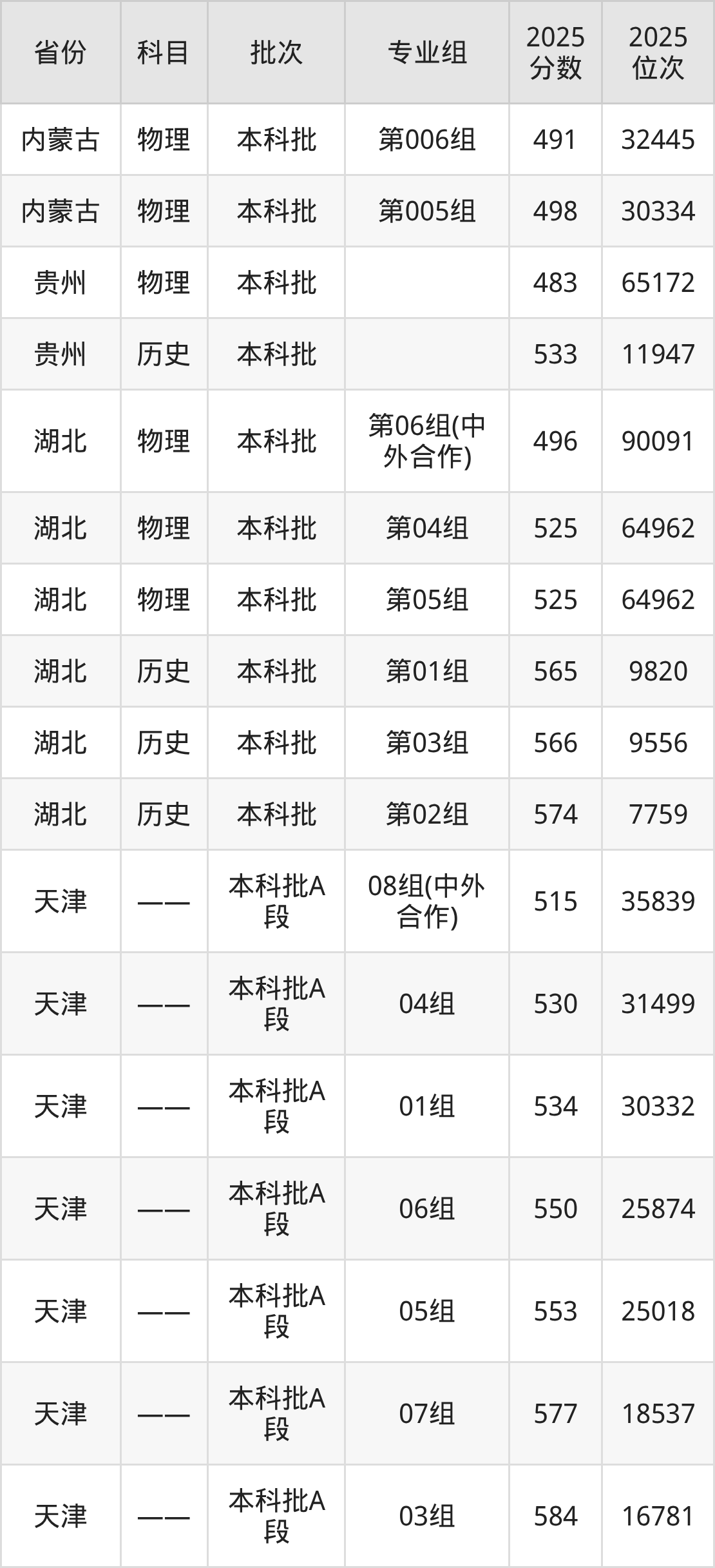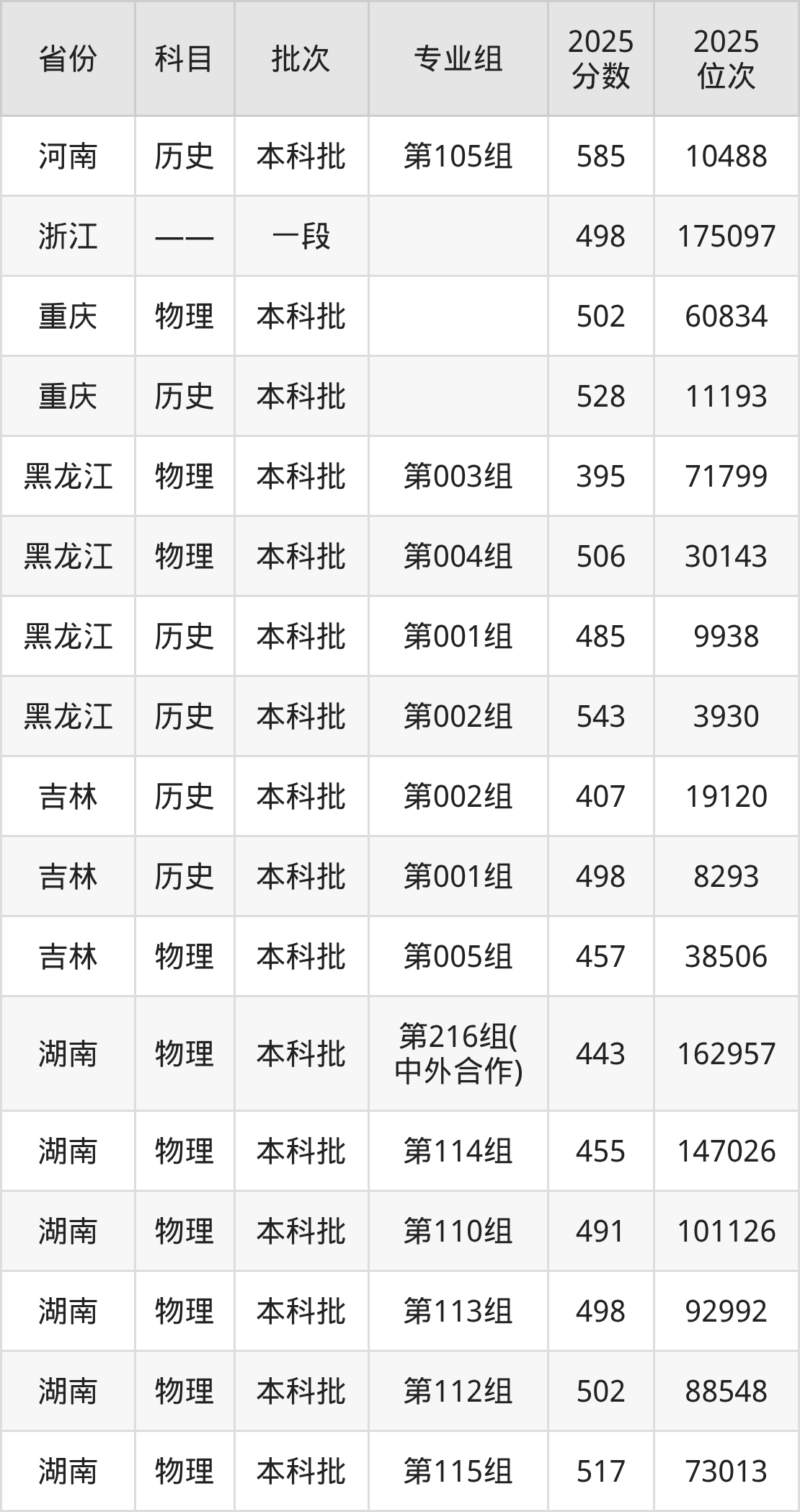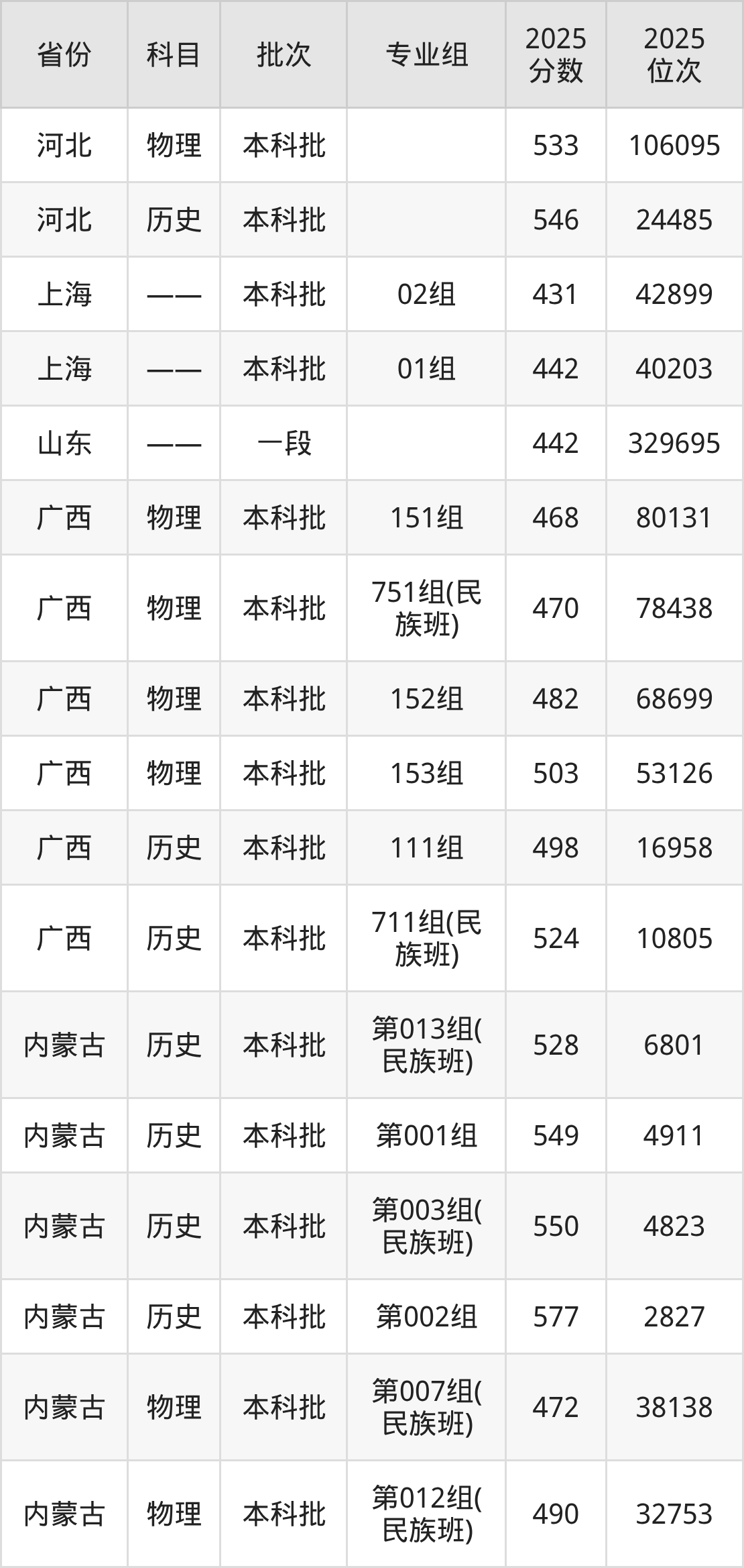 2025年投档录取最低分为533分,录取最低位次为106095名。
