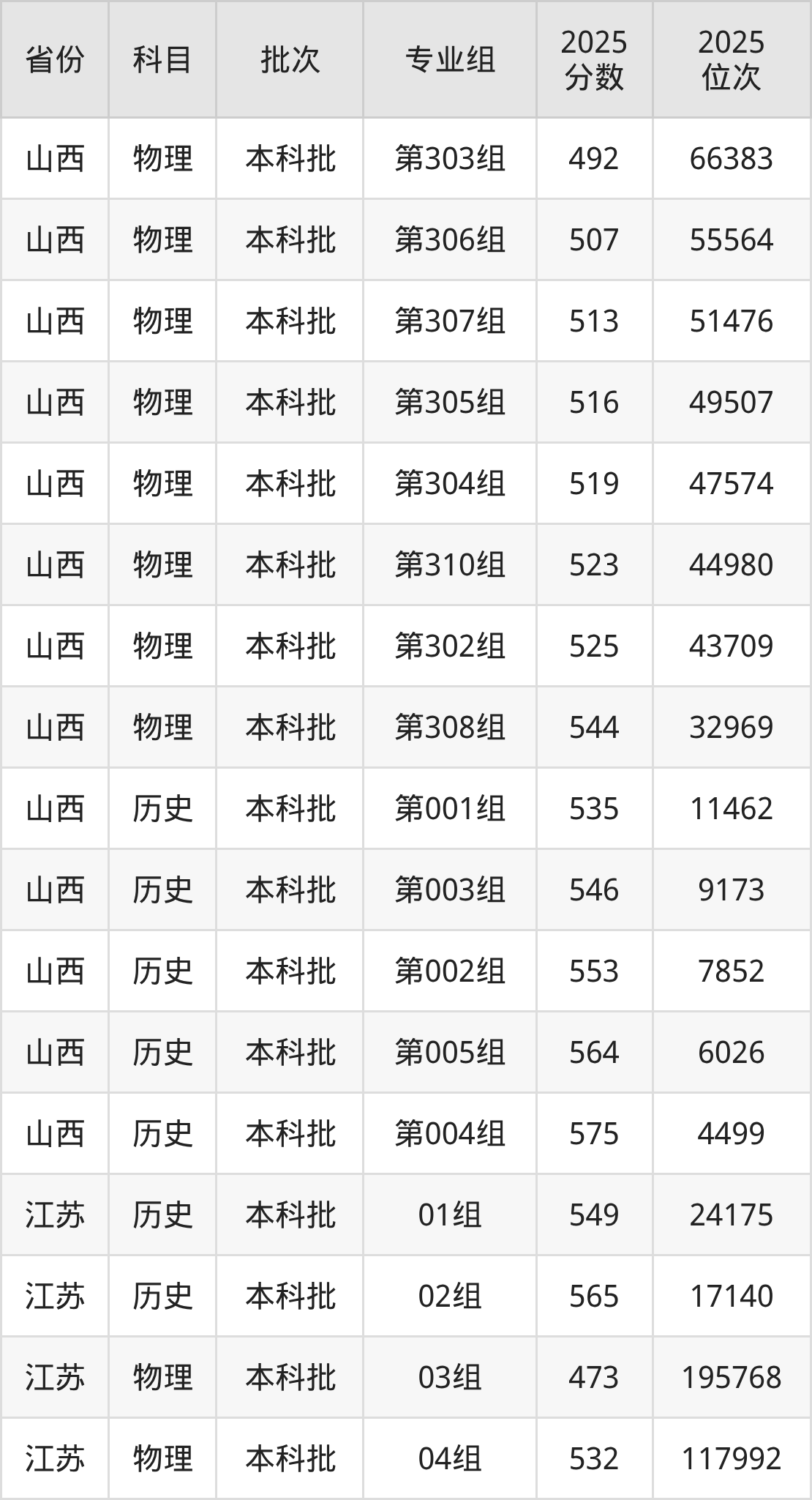 2025年投档录取最低分为546分,录取最低位次为24485名。
