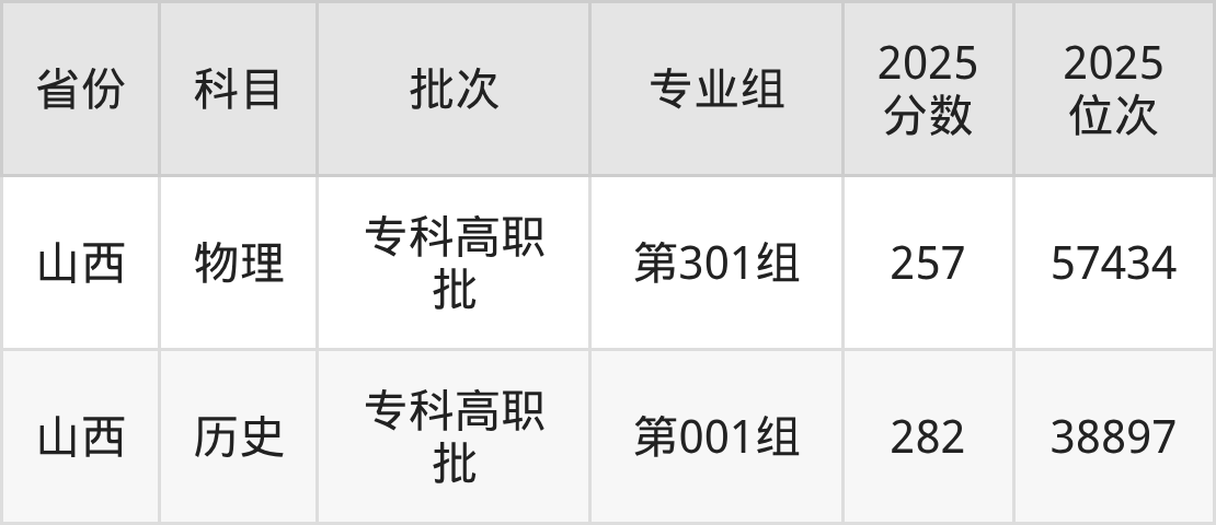 普通类专科物理类最低257分,专科历史类最低282分
