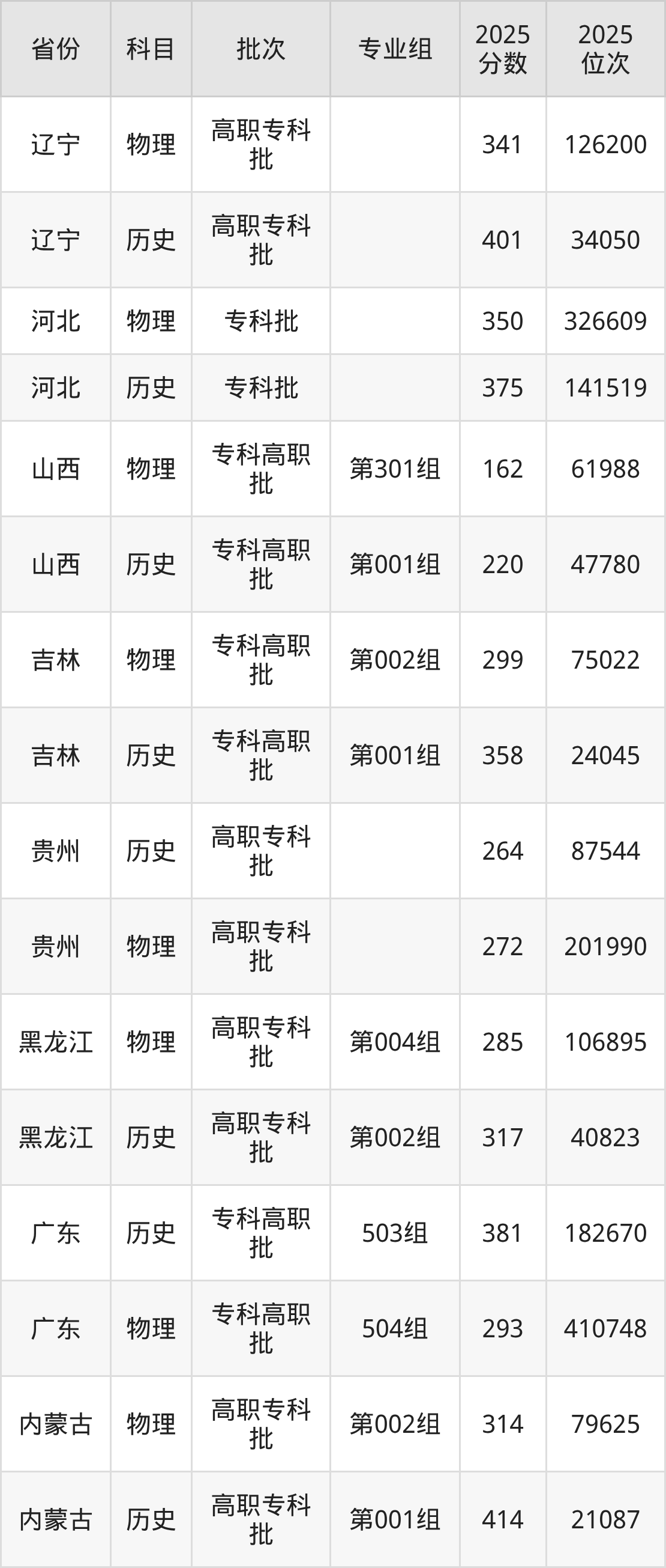 2025年黑龙江商业职业学院全国录取分数线是162分到414分,录取最低在山西物理类(第301组)、录取最高在内蒙古历史类(第001组)。各省各专业组最低分具有差异,详情如下: