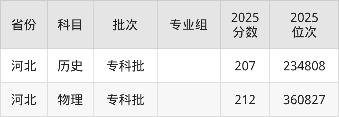 专科历史类投档录取最低207分,专科物理类投档录取最低212分