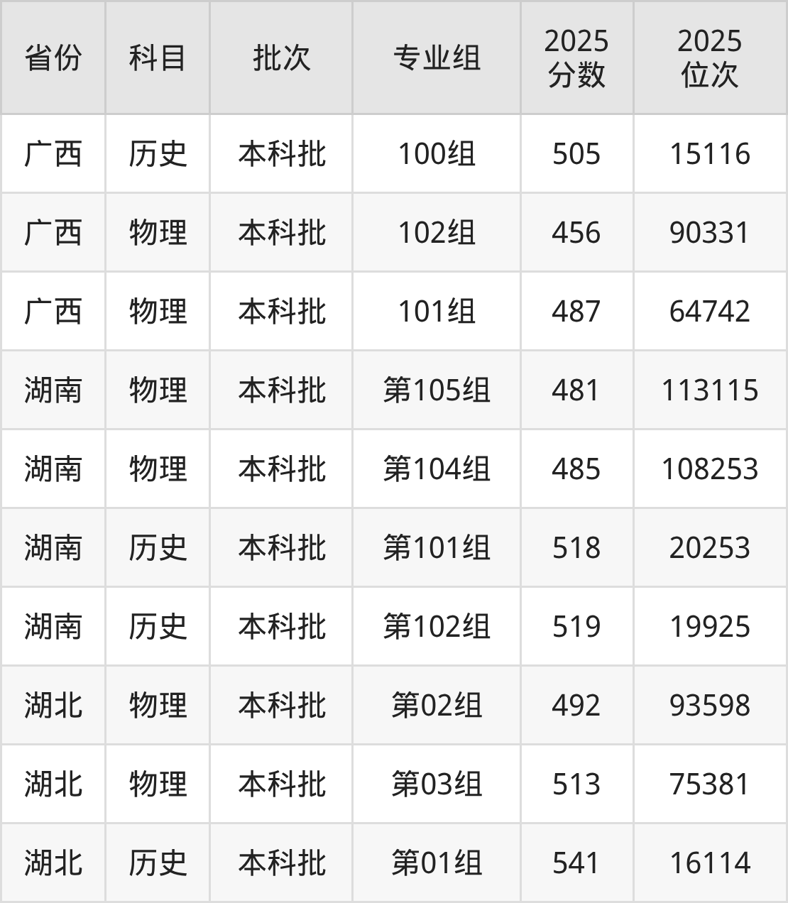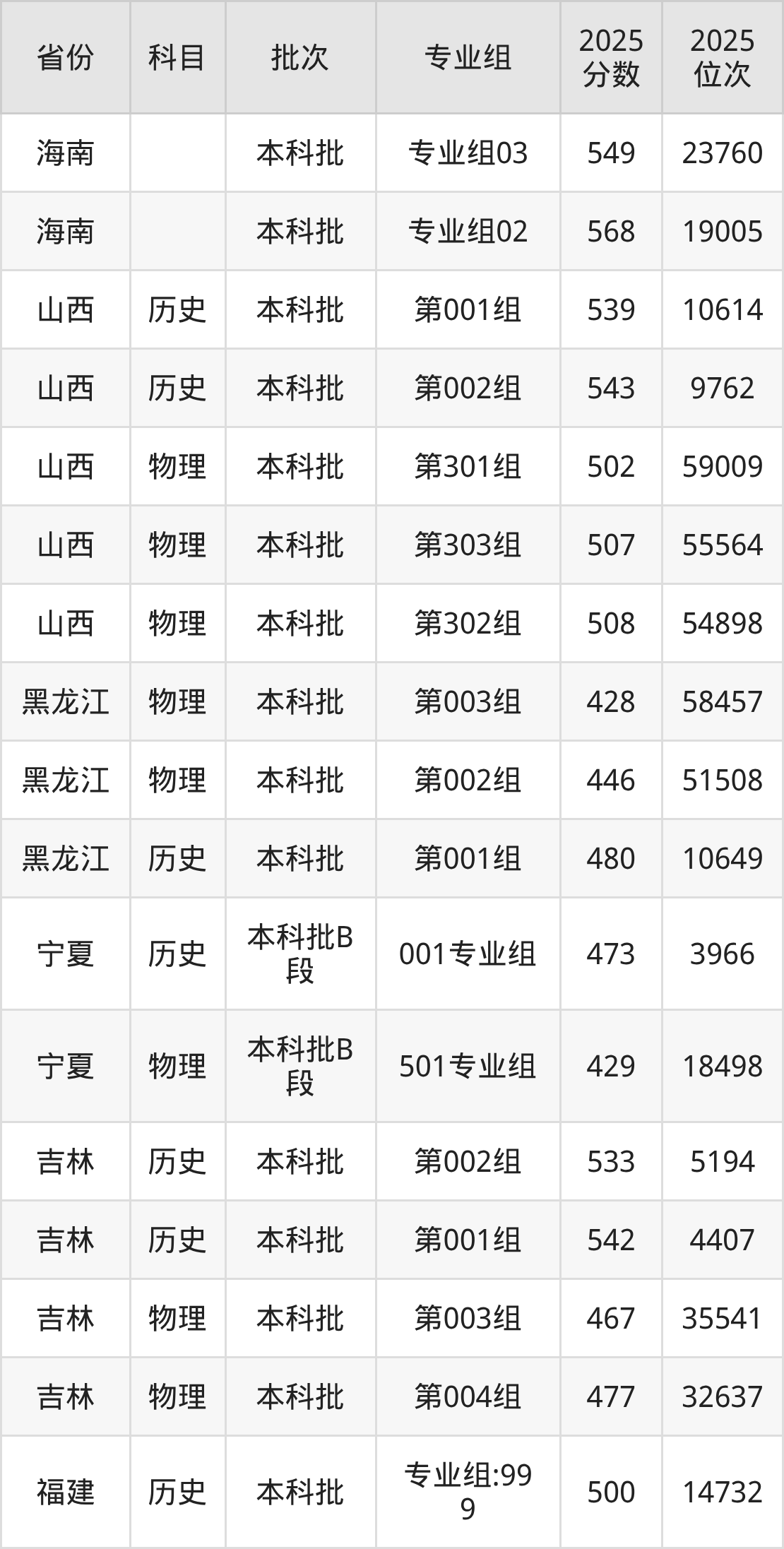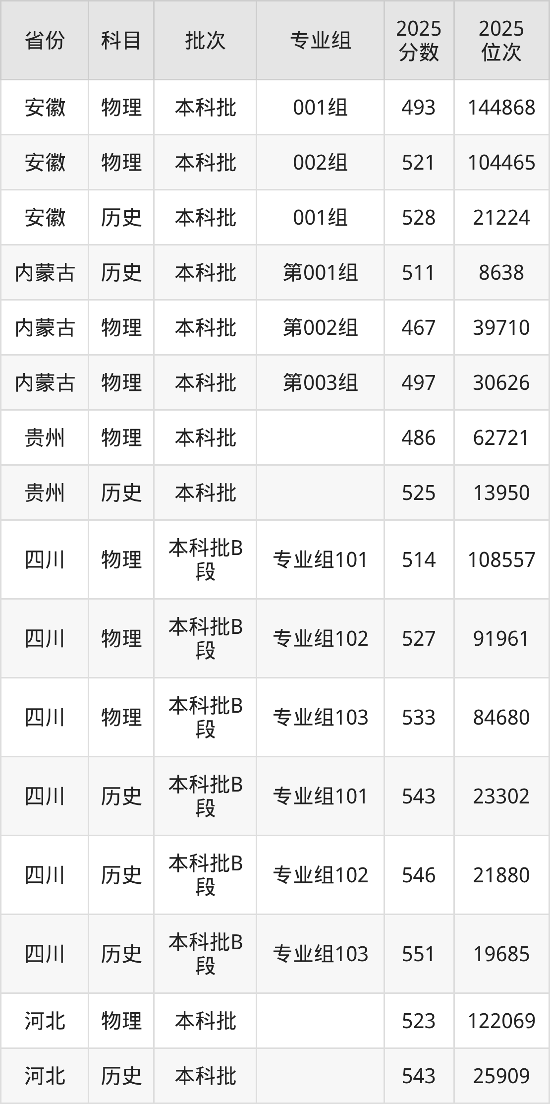 普通类本科物理类最低502分,本科历史类最低539分