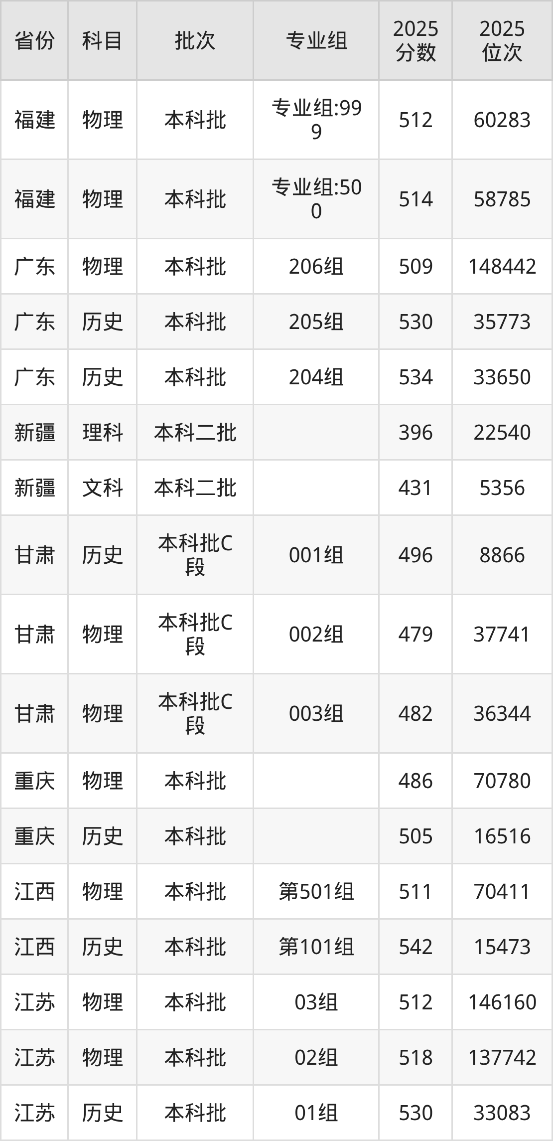 普通类本科物理类最低479分,本科历史类最低496分