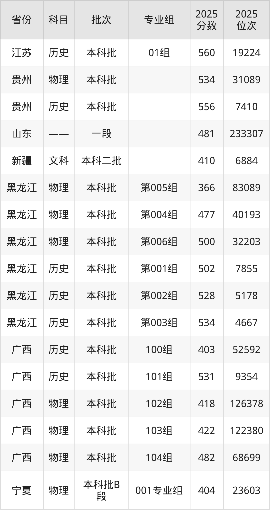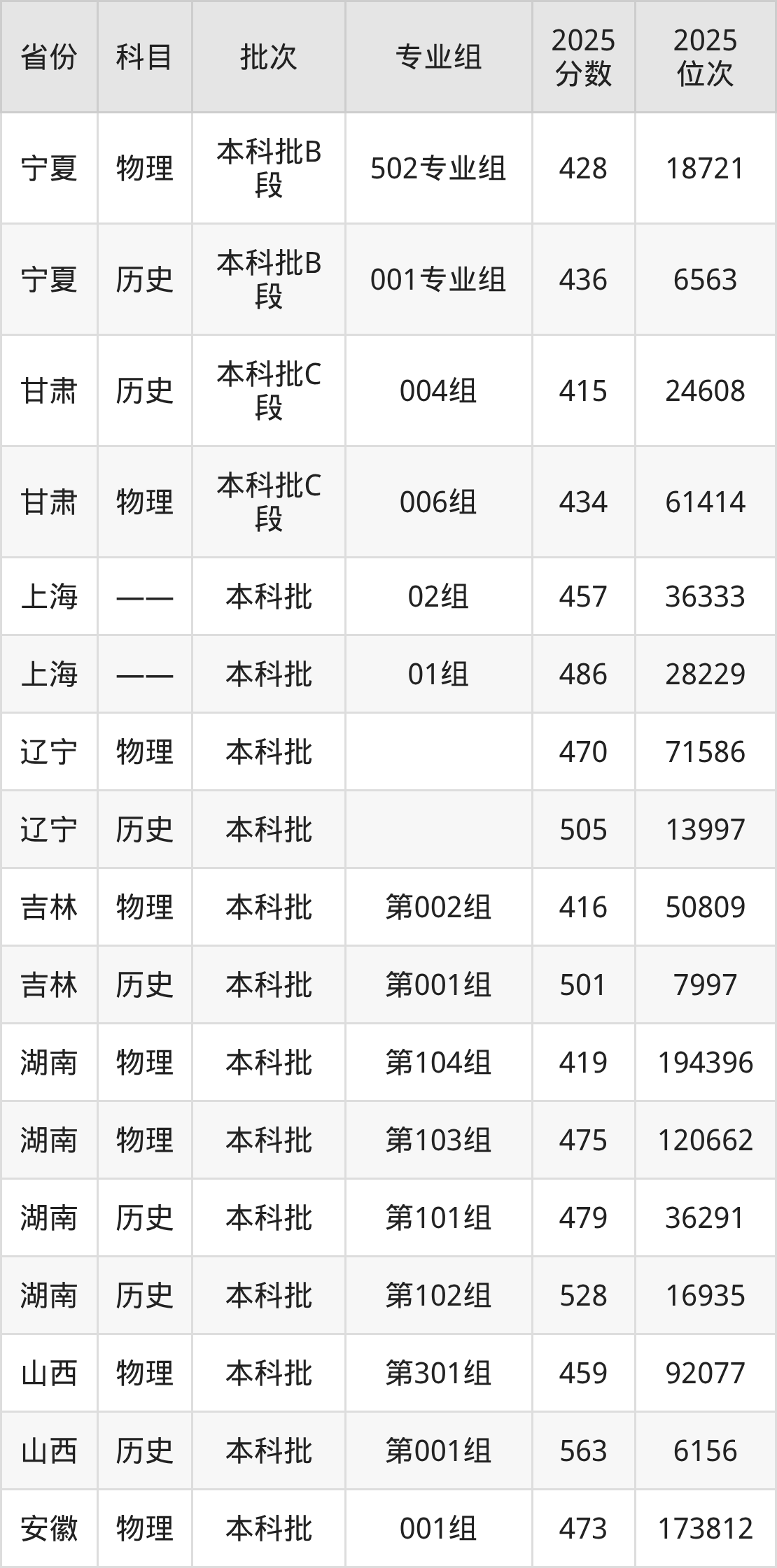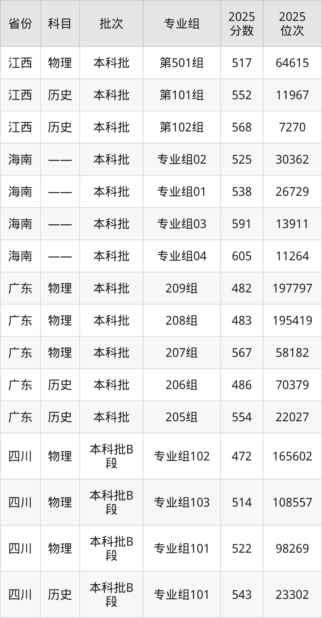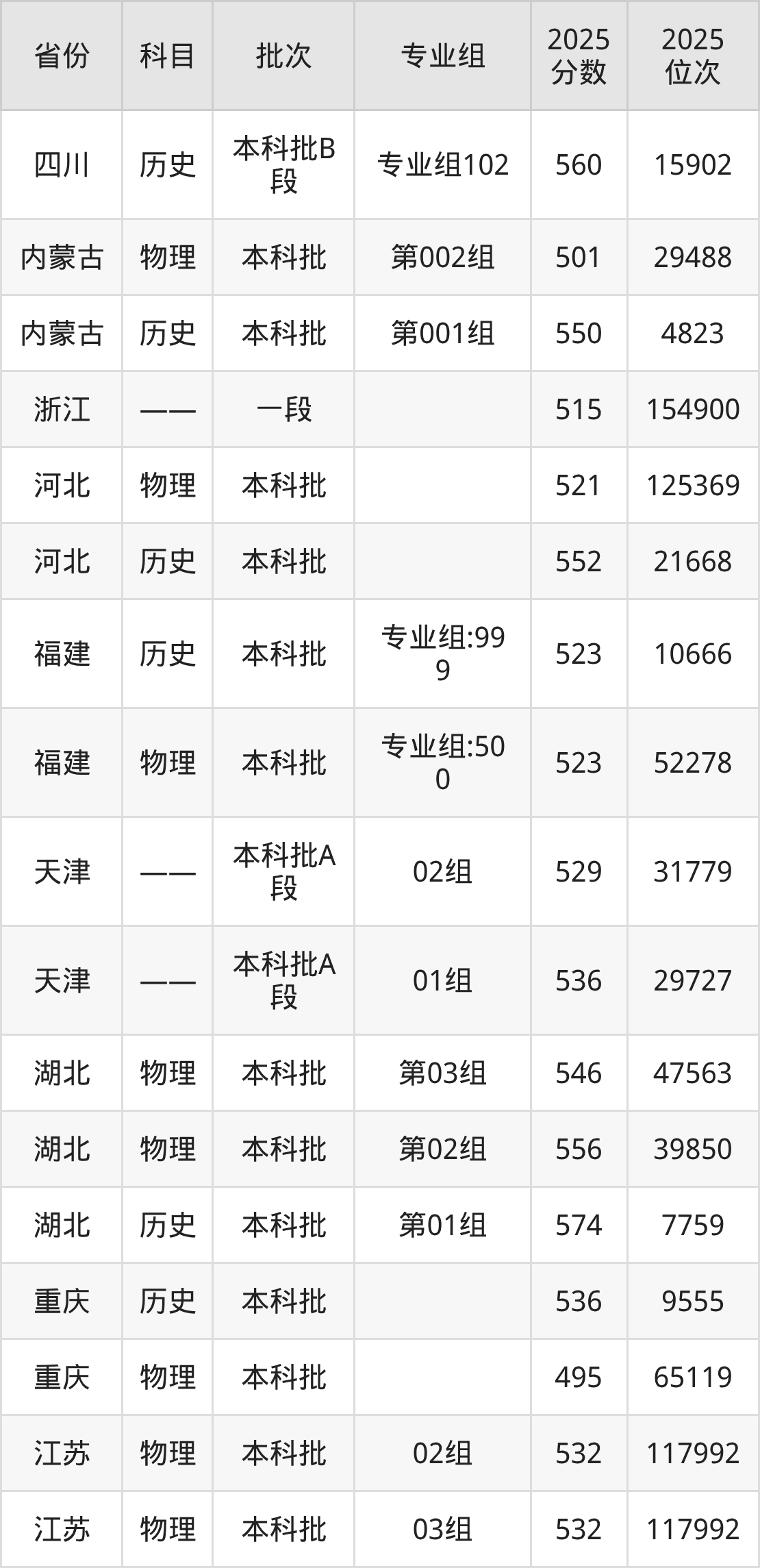 2025年投档录取最低分为505分,录取最低位次为13997名。