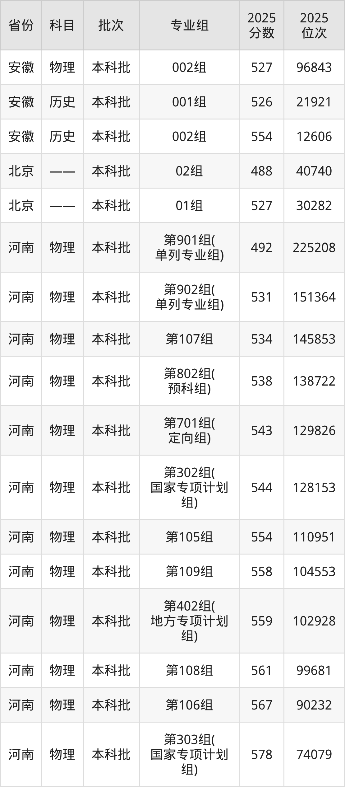 下面是2025年河南师范大学全国录取分数线一览表,请查阅。