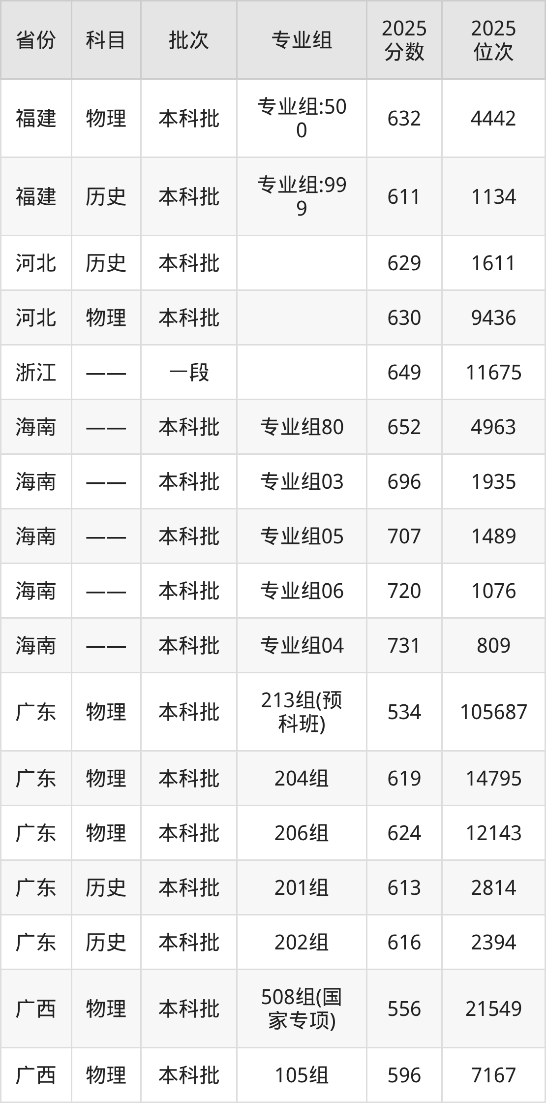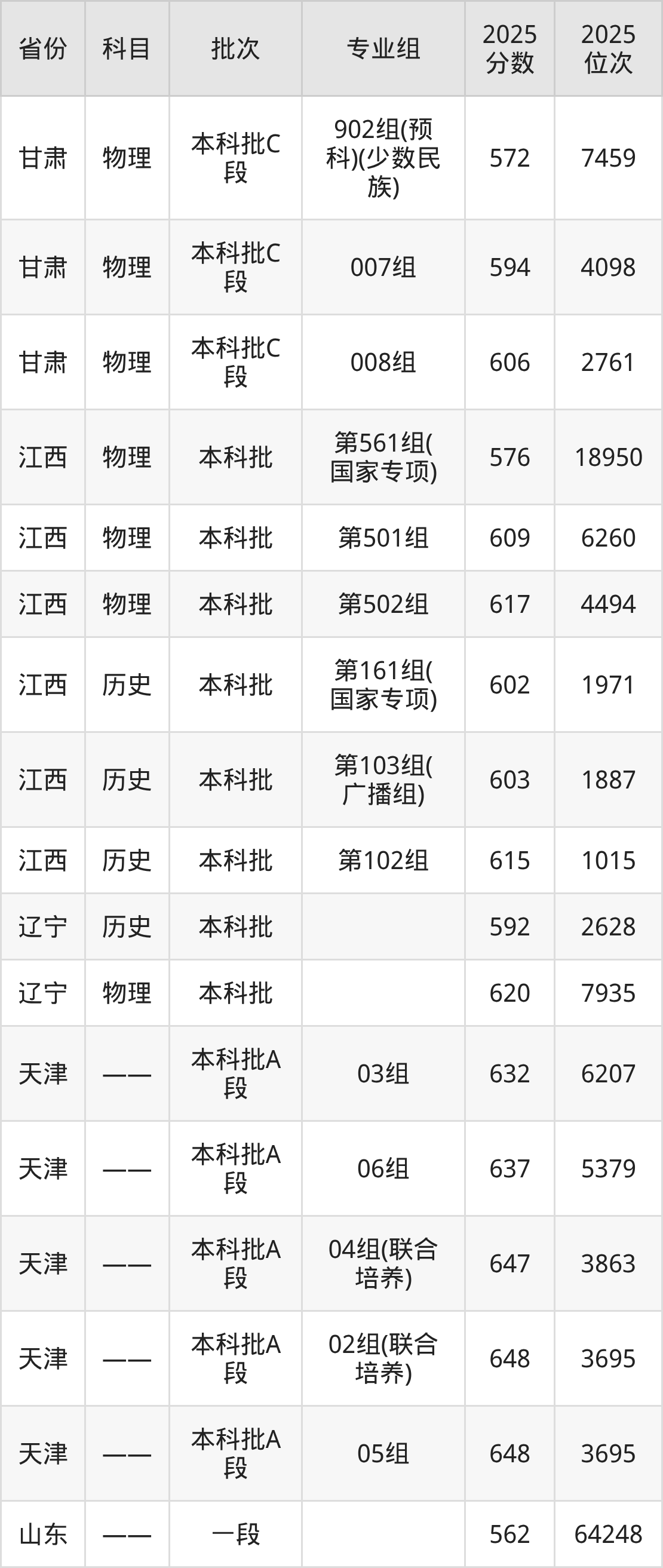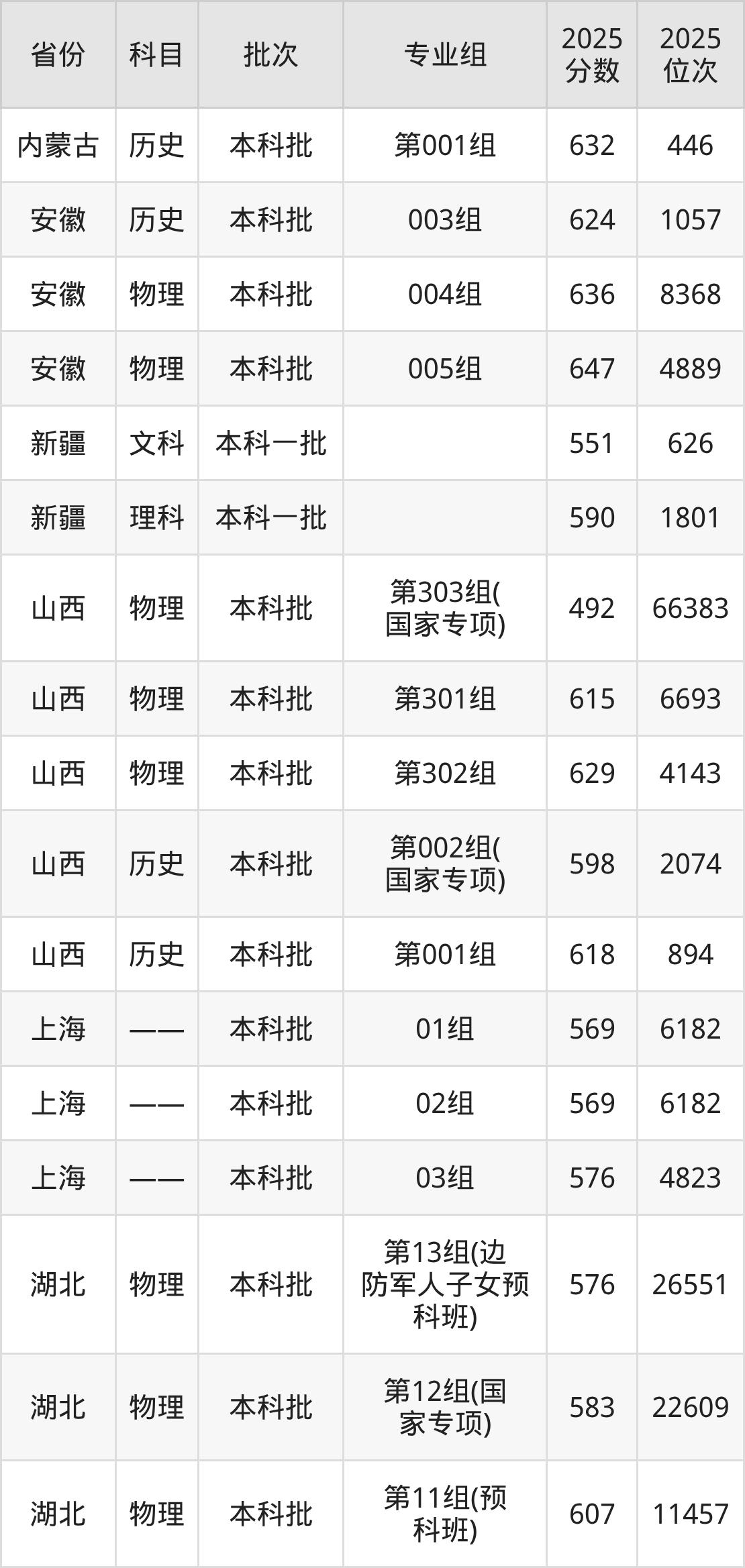 下面是2025年湖南大学全国录取分数线一览表,请查阅。