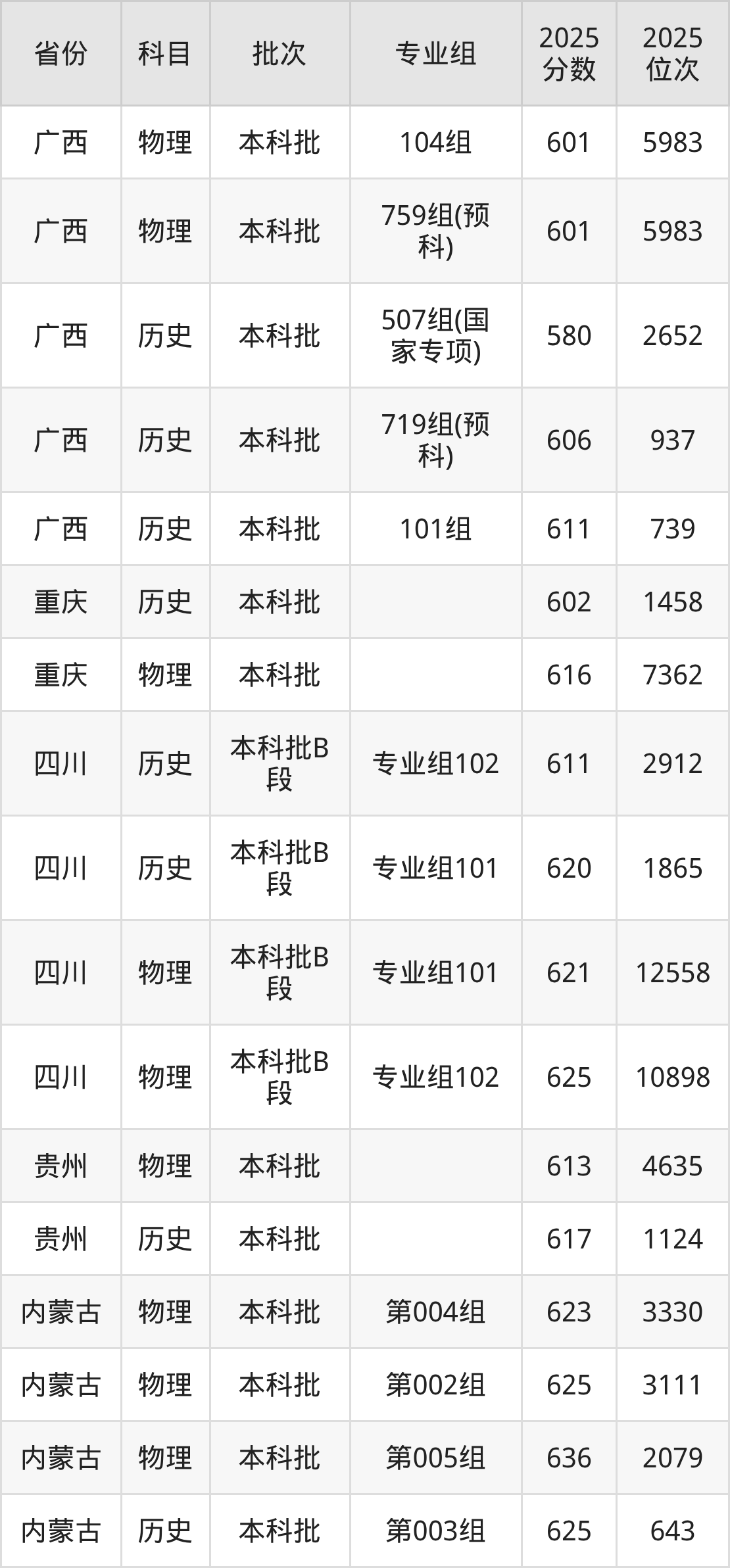 2025年投档录取最低分为620分,录取最低位次为7935名。