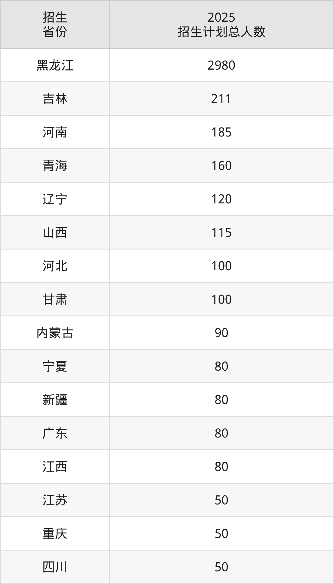 2025年黑龙江交通职业技术学院面向全国24个省市开展专科招生;招生专业共23个,招生人数共4711人。2025年在黑龙江省招生计划总人数是2980人,其中,黑龙江交通职业技术学院在黑龙江省招生人数最多的是机电一体化技术。黑龙江交通职业技术学院在各省具体招生人数情况如下表。