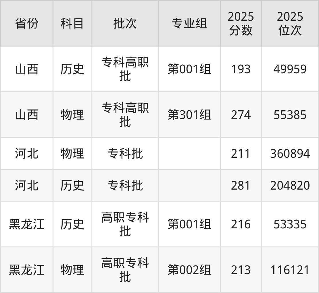 2025年北京北大方正软件职业技术学院全国录取分数线是193分到328分,录取最低在山西历史类(第001组)、录取最高在河北物理类。各省各专业组最低分具有差异,详情如下: