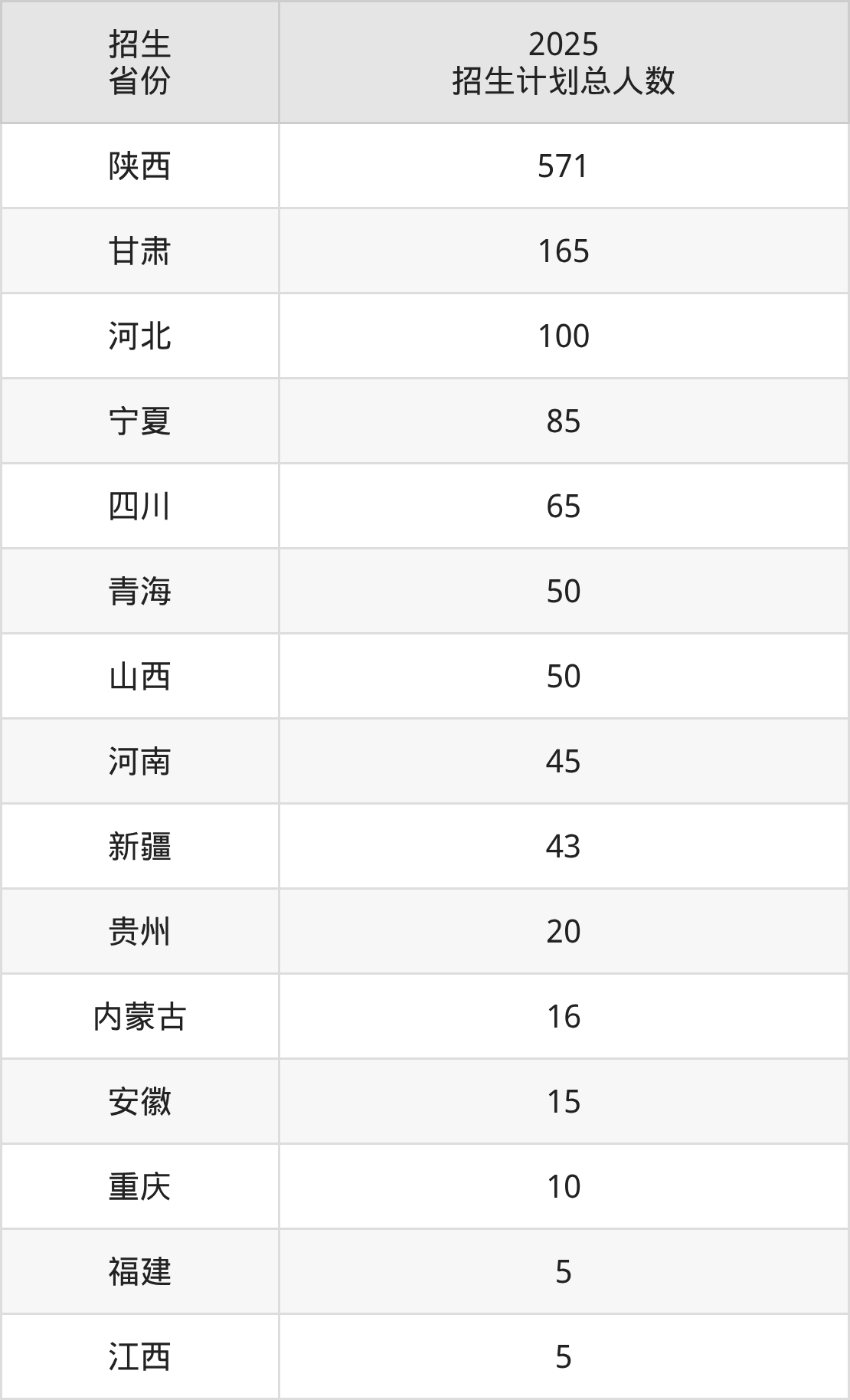 2025年宝鸡职业技术学院面向全国15个省市开展专科招生;招生专业共54个,招生人数共1245人。2025年在陕西省招生计划总人数是571人,其中,宝鸡职业技术学院在陕西省招生人数最多的是临床医学。宝鸡职业技术学院在各省具体招生人数情况如下表。