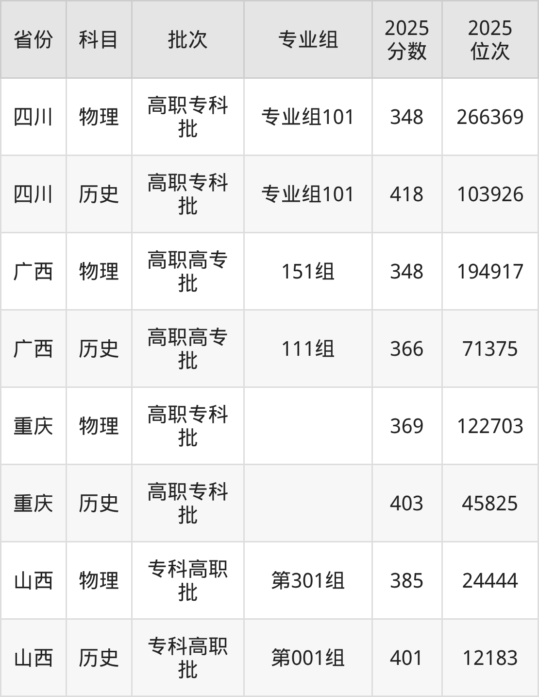 宝鸡职业技术学院第001组:2025年投档录取最低分为401分,录取最低位次为12183名。