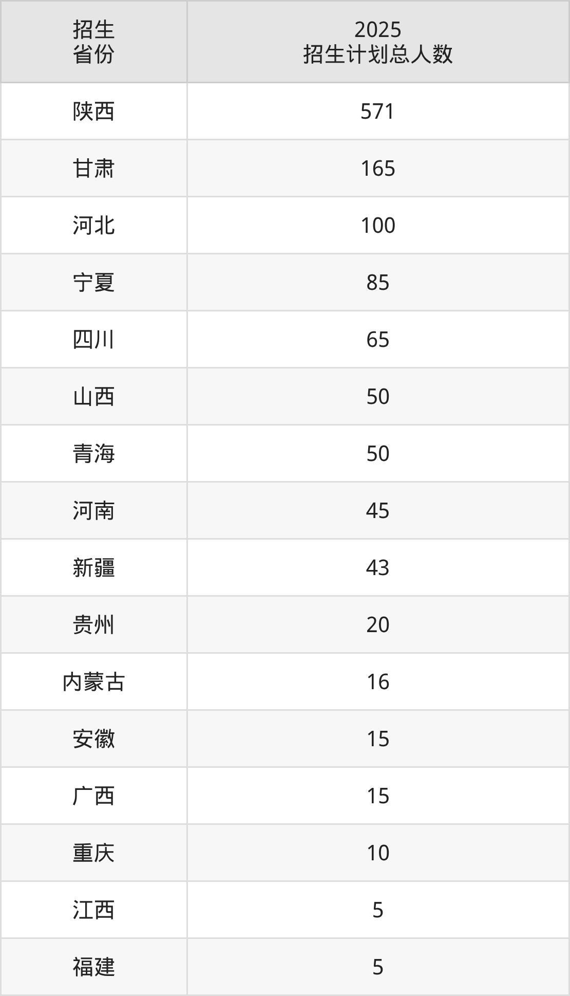 2025年宝鸡职业技术学院面向全国16个省市开展专科招生;招生专业共54个,招生人数共1260人。2025年在陕西省招生计划总人数是571人,其中,宝鸡职业技术学院在陕西省招生人数最多的是临床医学。宝鸡职业技术学院在各省具体招生人数情况如下表。