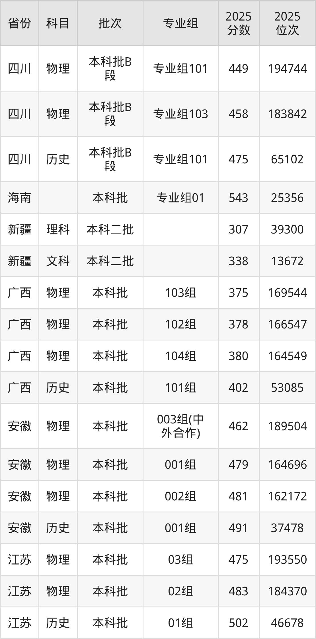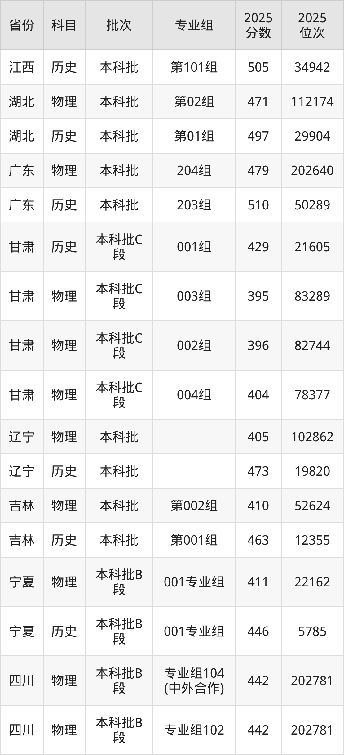 2025年投档录取最低分为405分,录取最低位次为102862名。