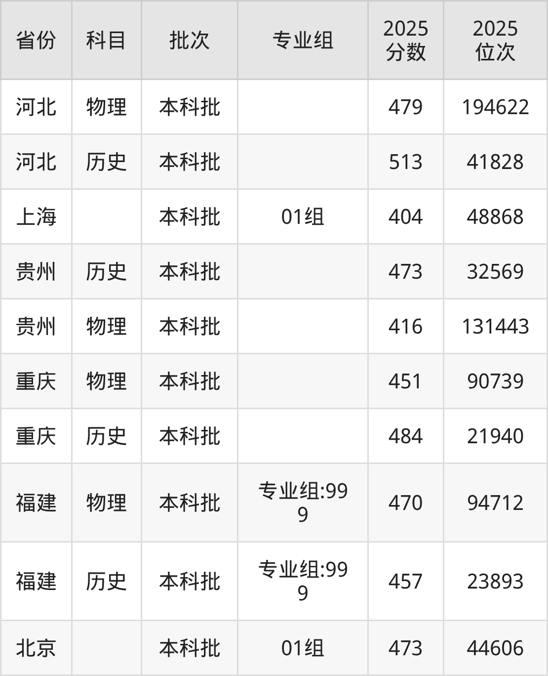 2025年投档录取最低分为473分,录取最低位次为19820名。