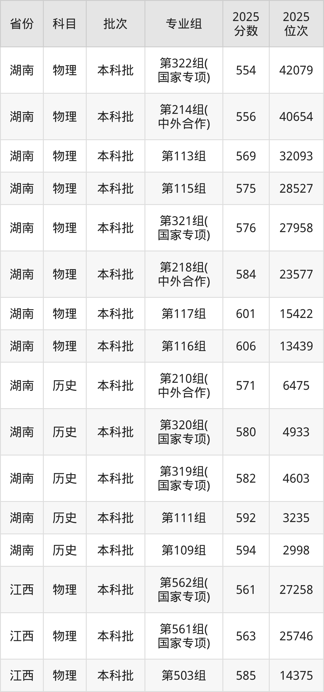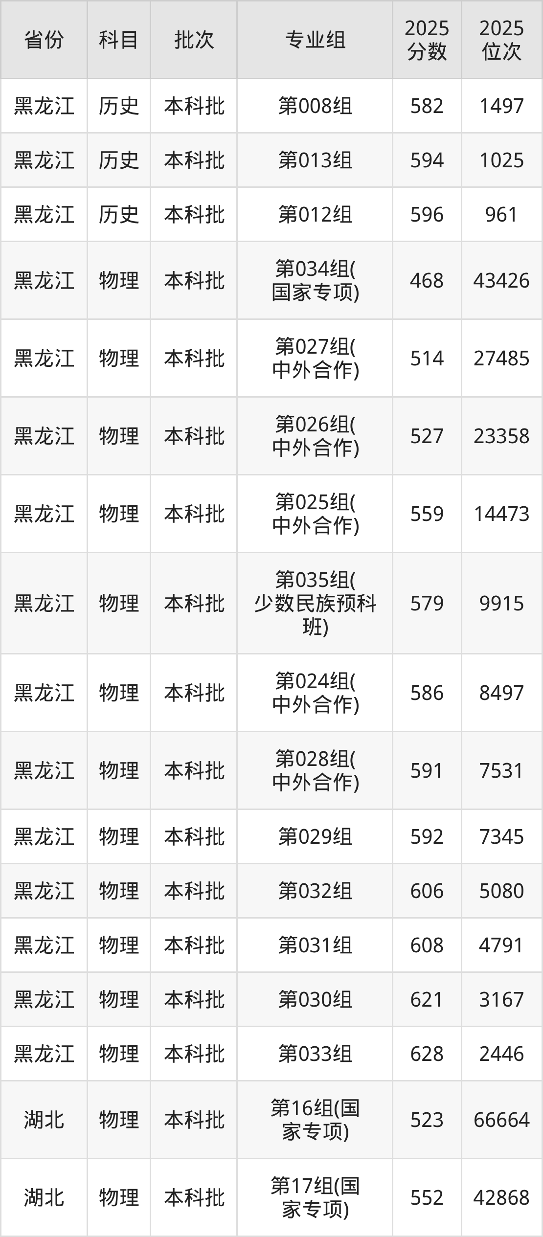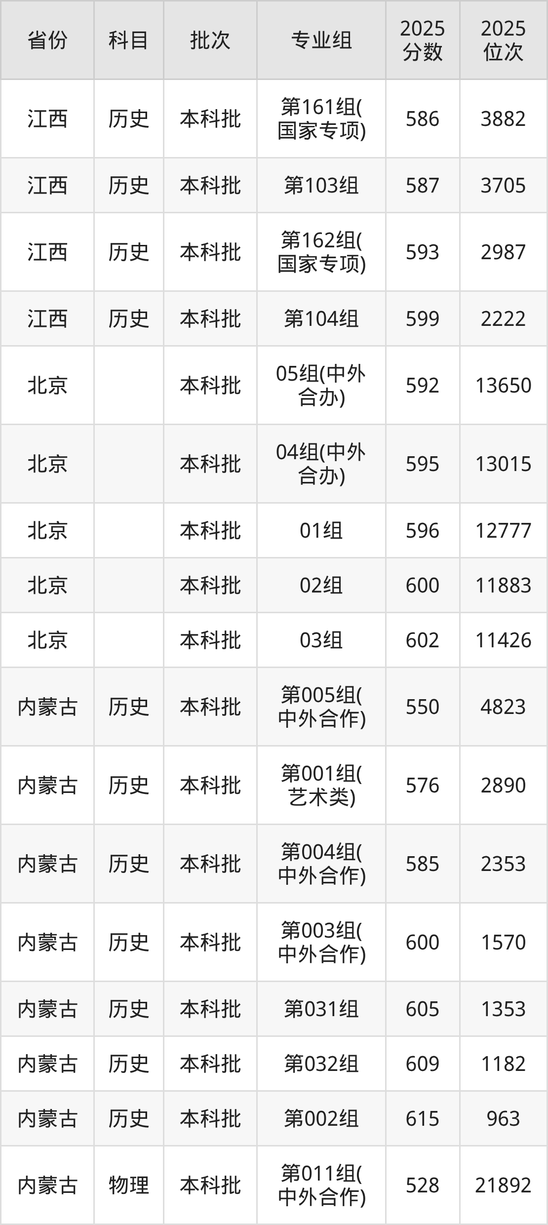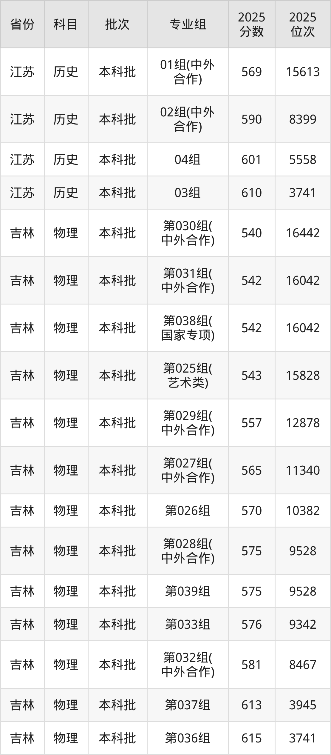 东北师范大学051组(中外合作办学):2025年投档录取最低分为600分,录取最低位次为26494名。