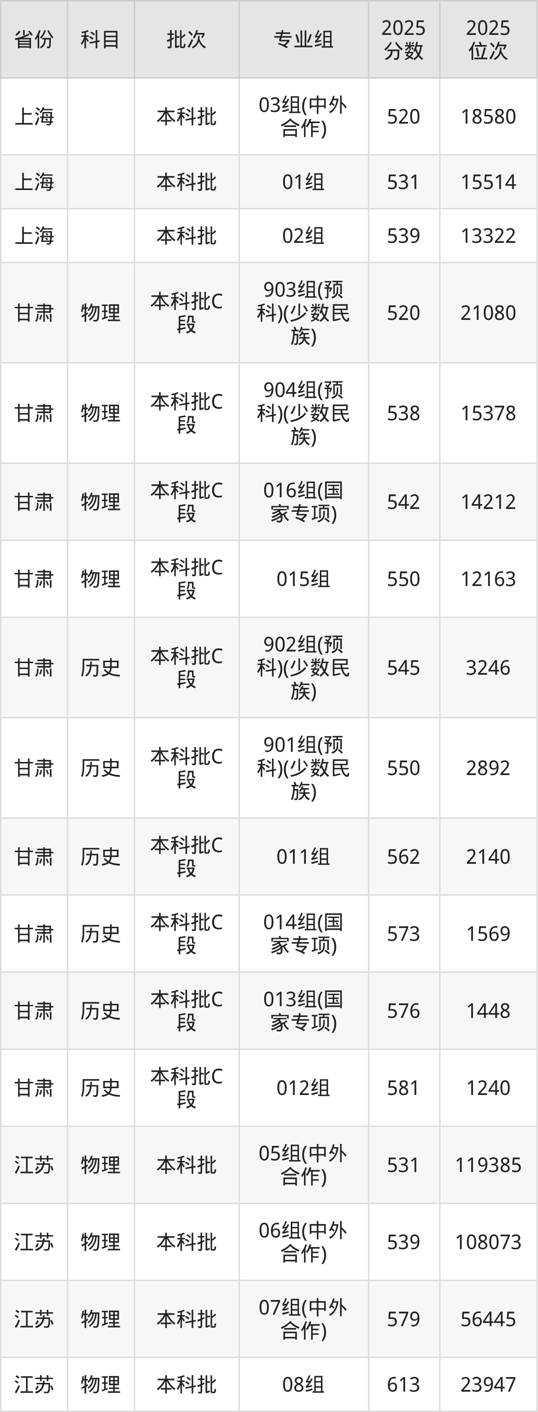 东北师范大学008组(中外合作办学):2025年投档录取最低分为579分,录取最低位次为6695名。