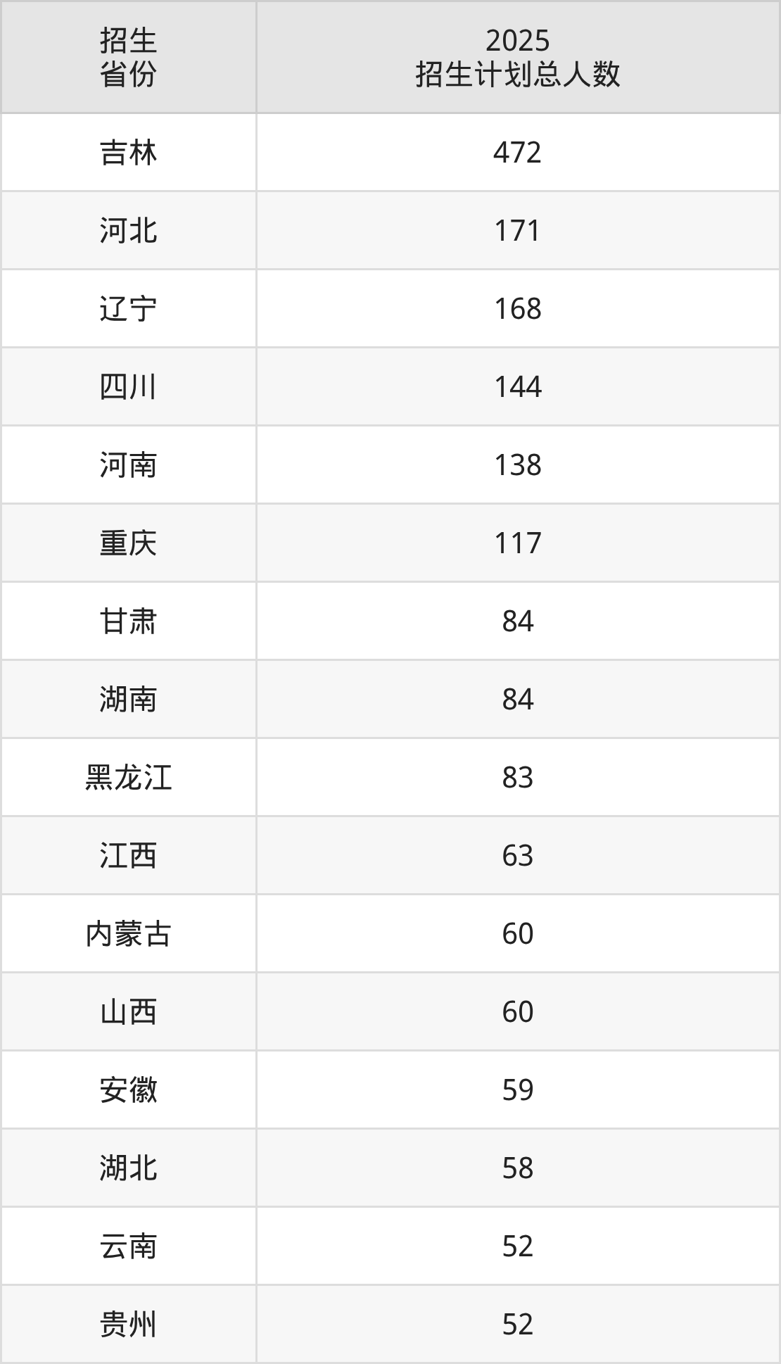 2025年东北师范大学面向全国28个省市开展本科招生;招生专业共40个,招生人数共2083人。2025年在吉林省招生计划总人数是472人,其中,东北师范大学在吉林省招生人数最多的是数学类。东北师范大学在各省具体招生人数情况如下表。