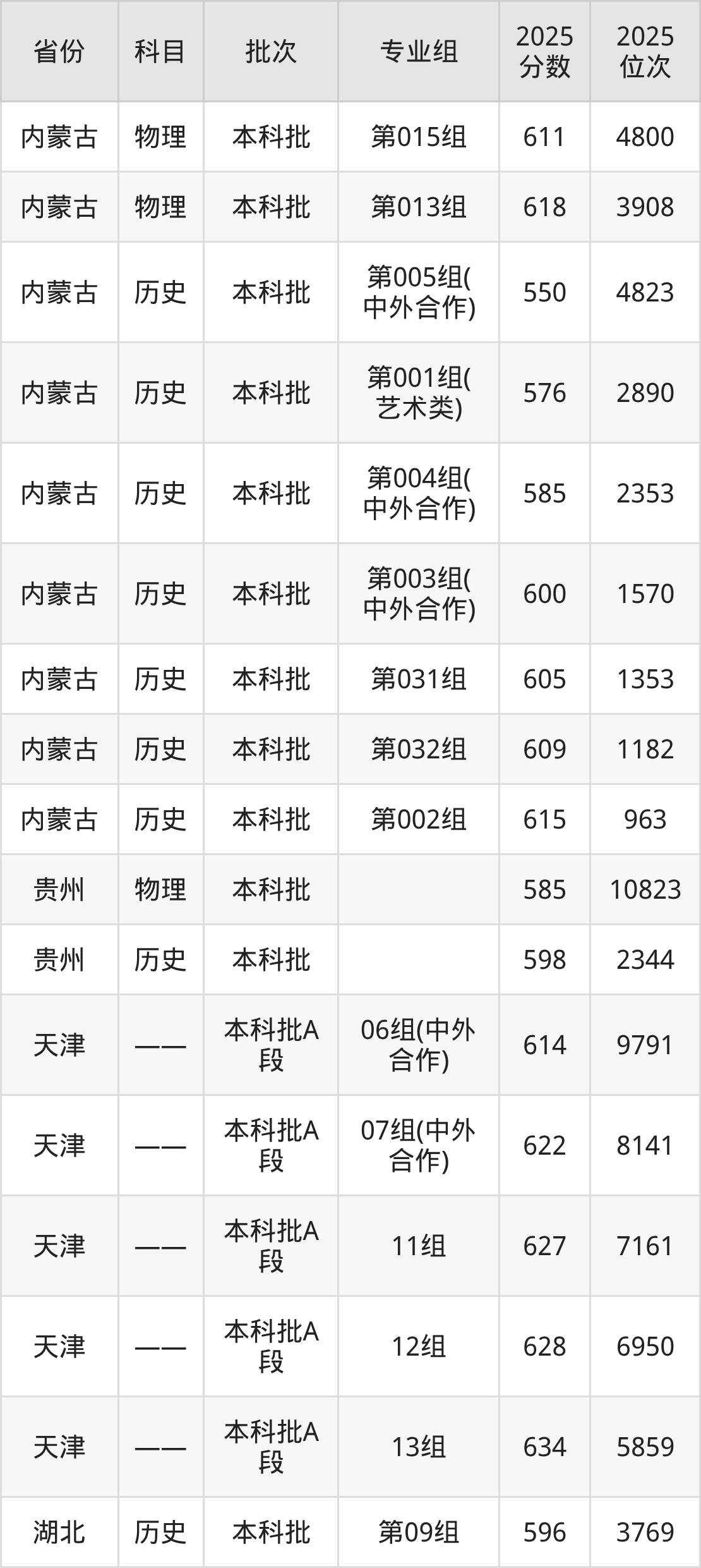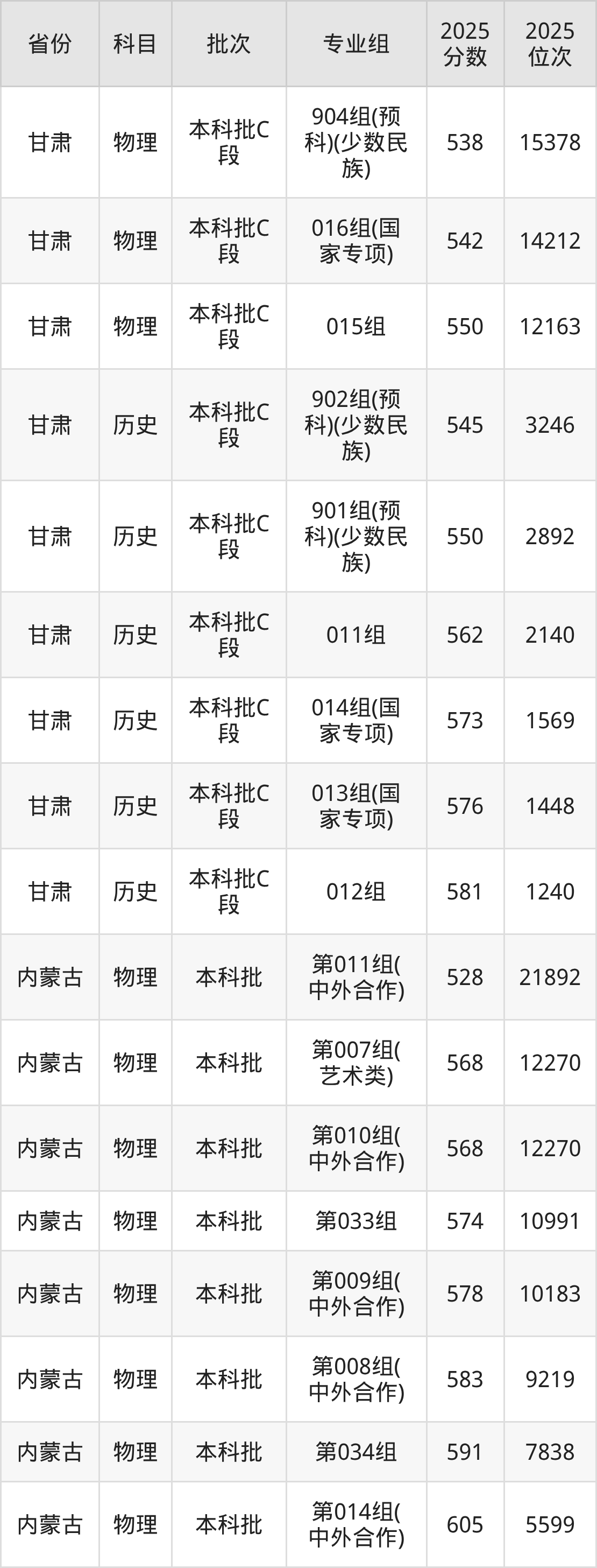 东北师范大学第205组(中外合作办学组):2025年投档录取最低分为583分,录取最低位次为11181名。