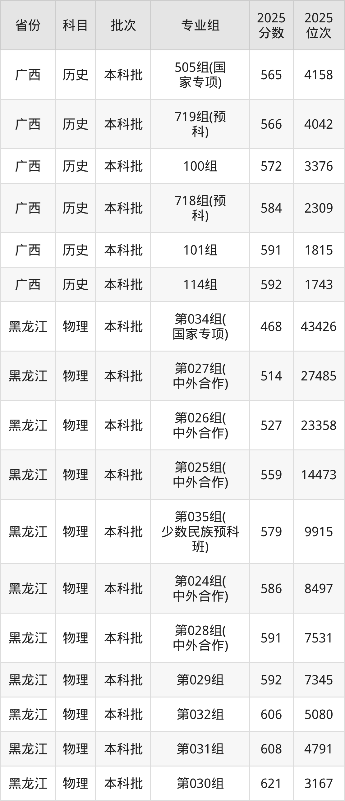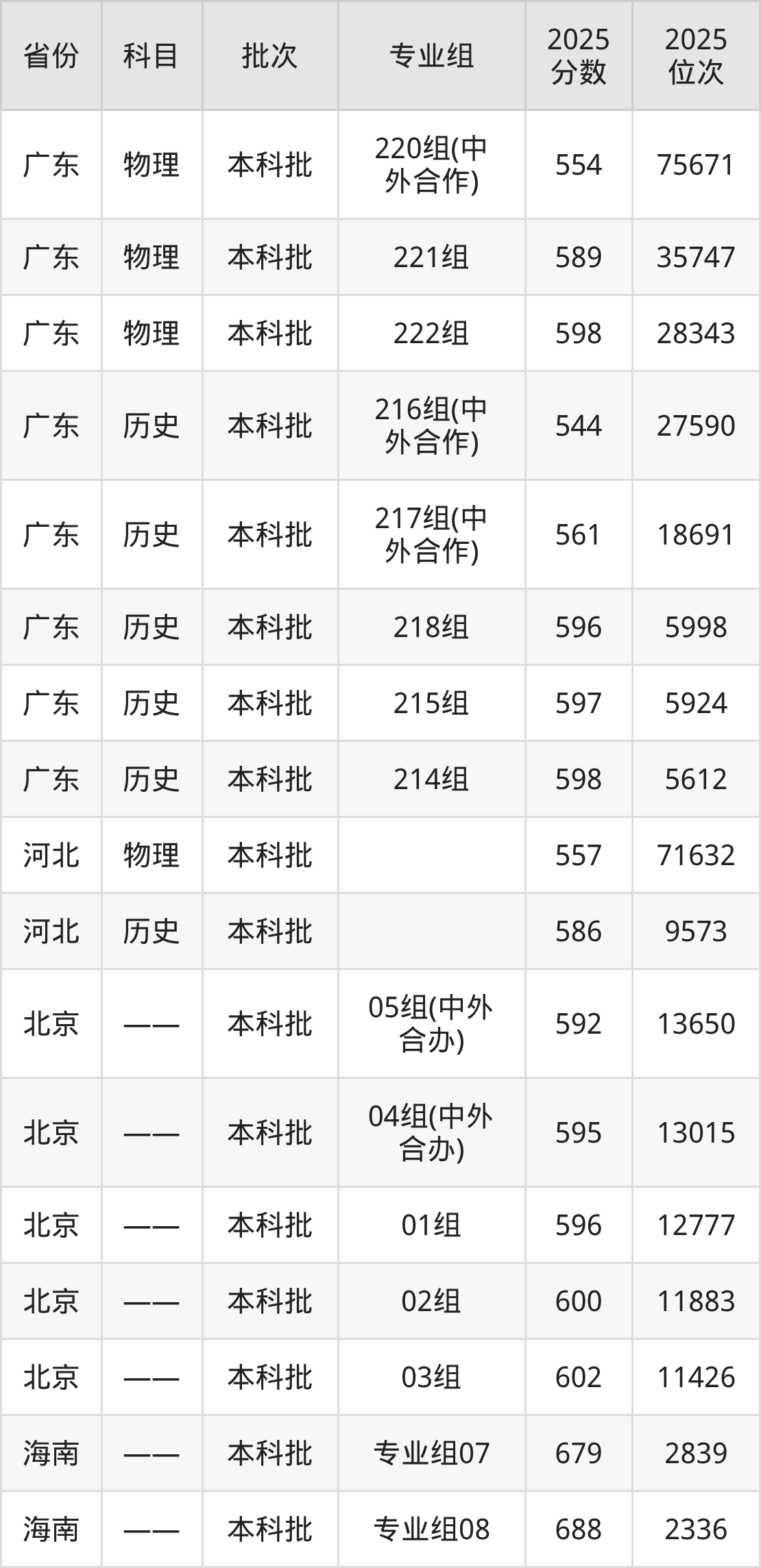 东北师范大学第211组(中外合作办学组):2025年投档录取最低分为599分,录取最低位次为47010名。