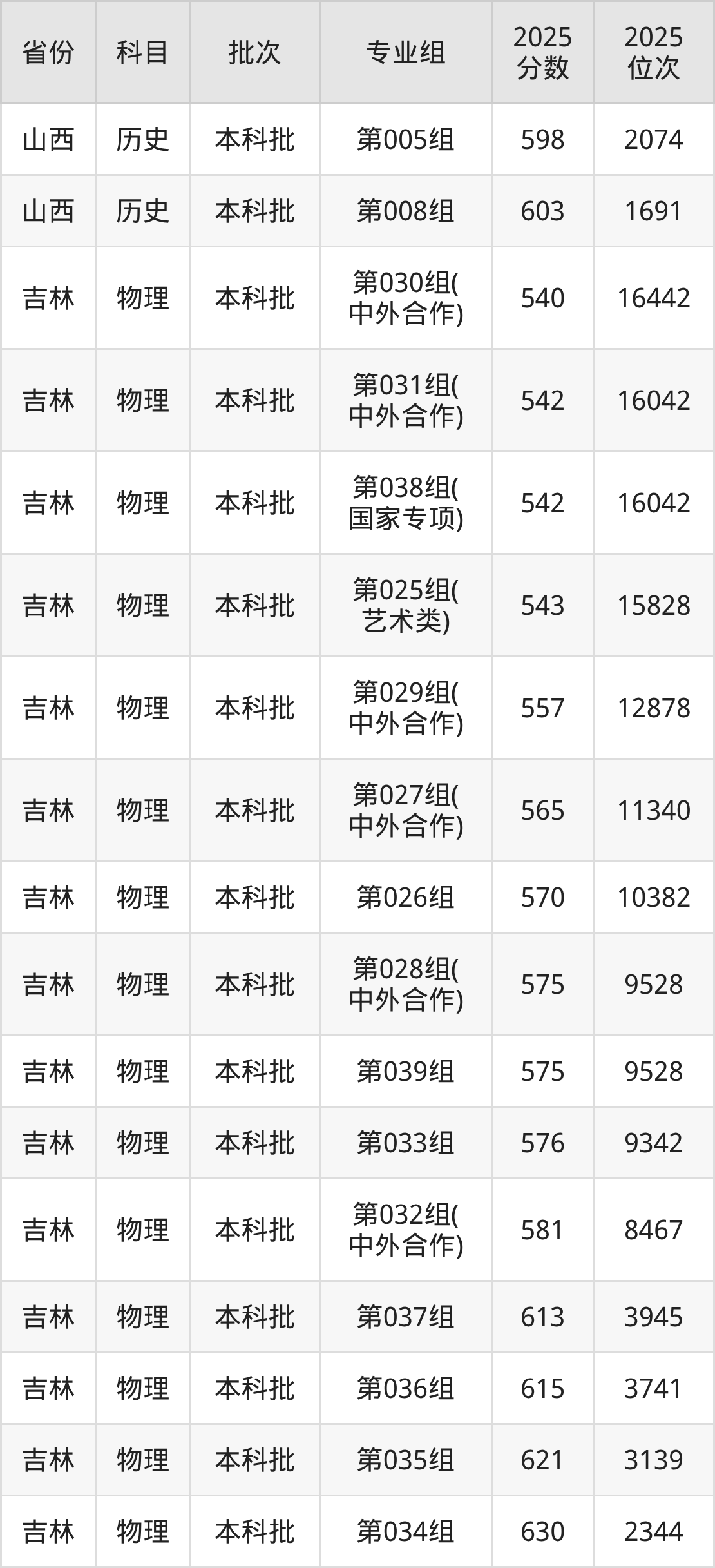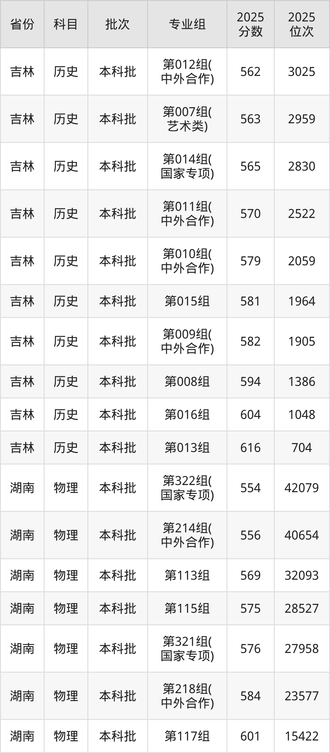 东北师范大学第212组(中外合作办学组):2025年投档录取最低分为593分,录取最低位次为54059名。