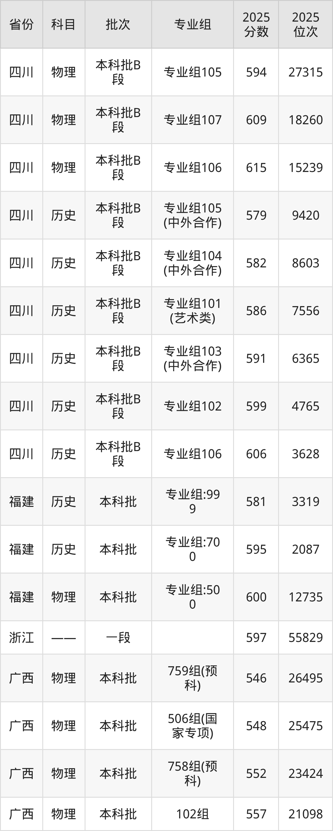 2025年投档录取最低分为557分,录取最低位次为71632名。