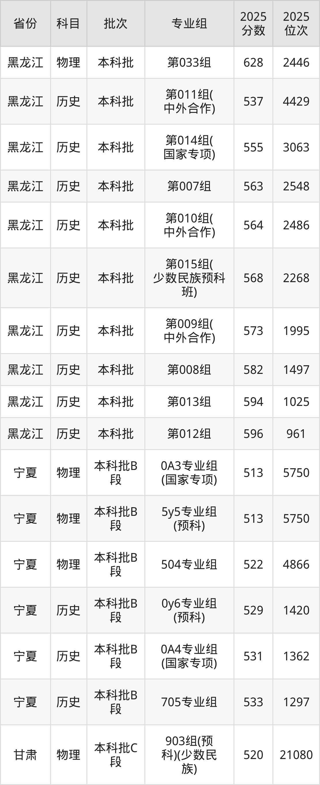 东北师范大学06组(中外合作办学):2025年投档录取最低分为539分,录取最低位次为108073名。