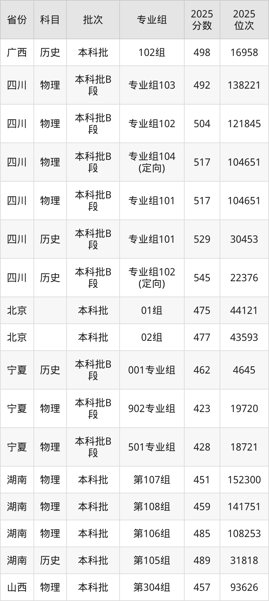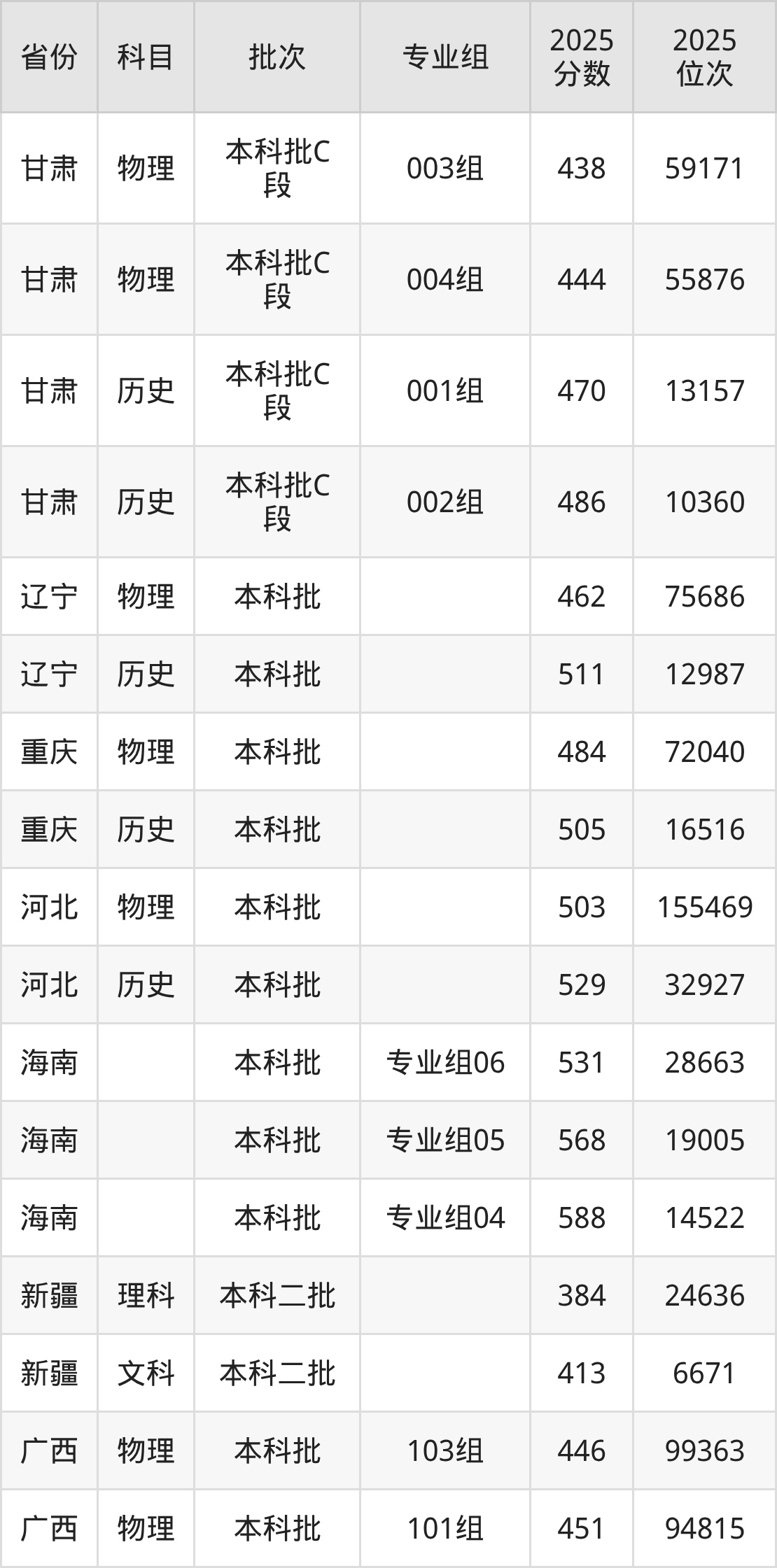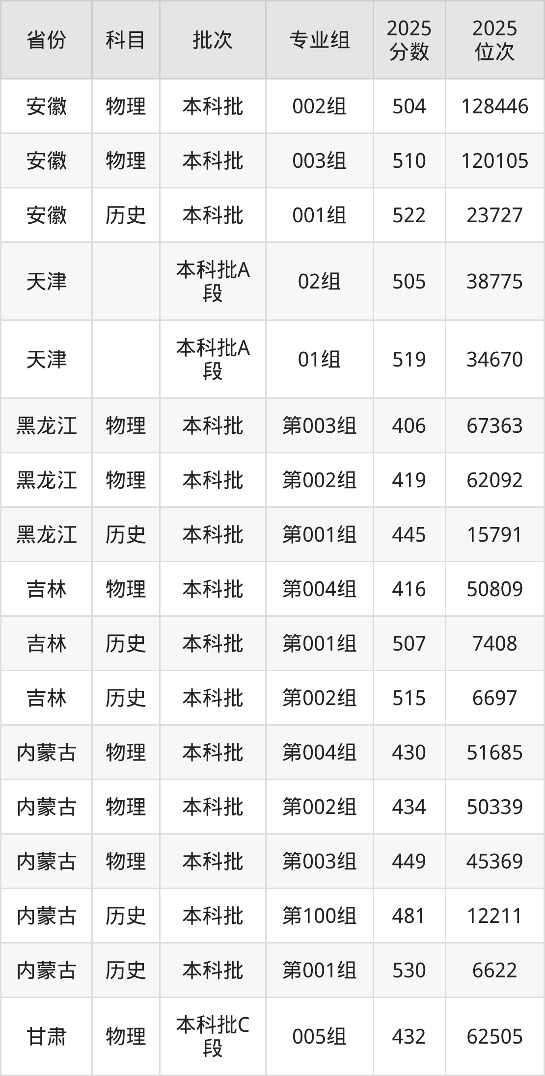 2025年投档录取最低分为506分,录取最低位次为19609名。