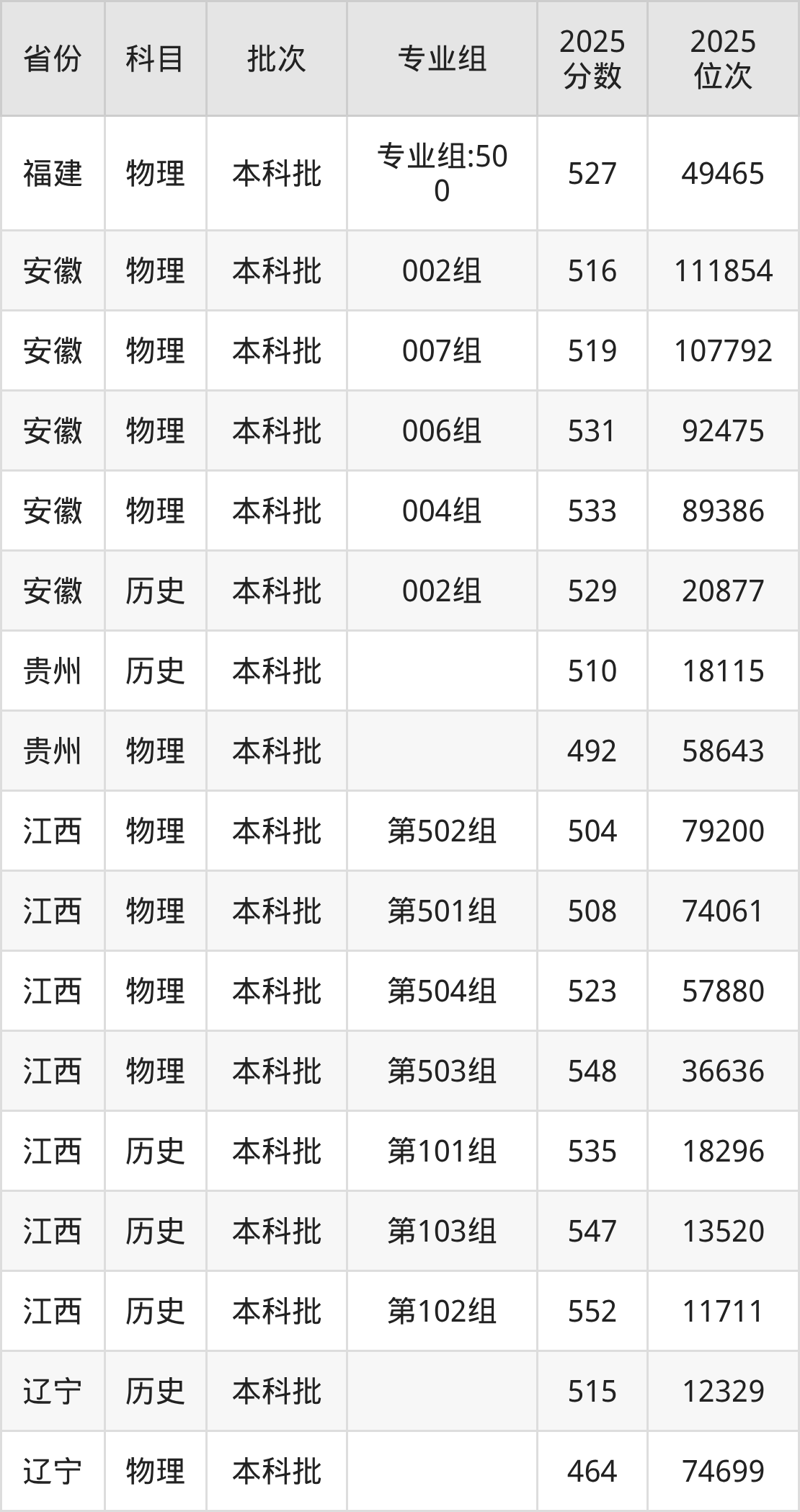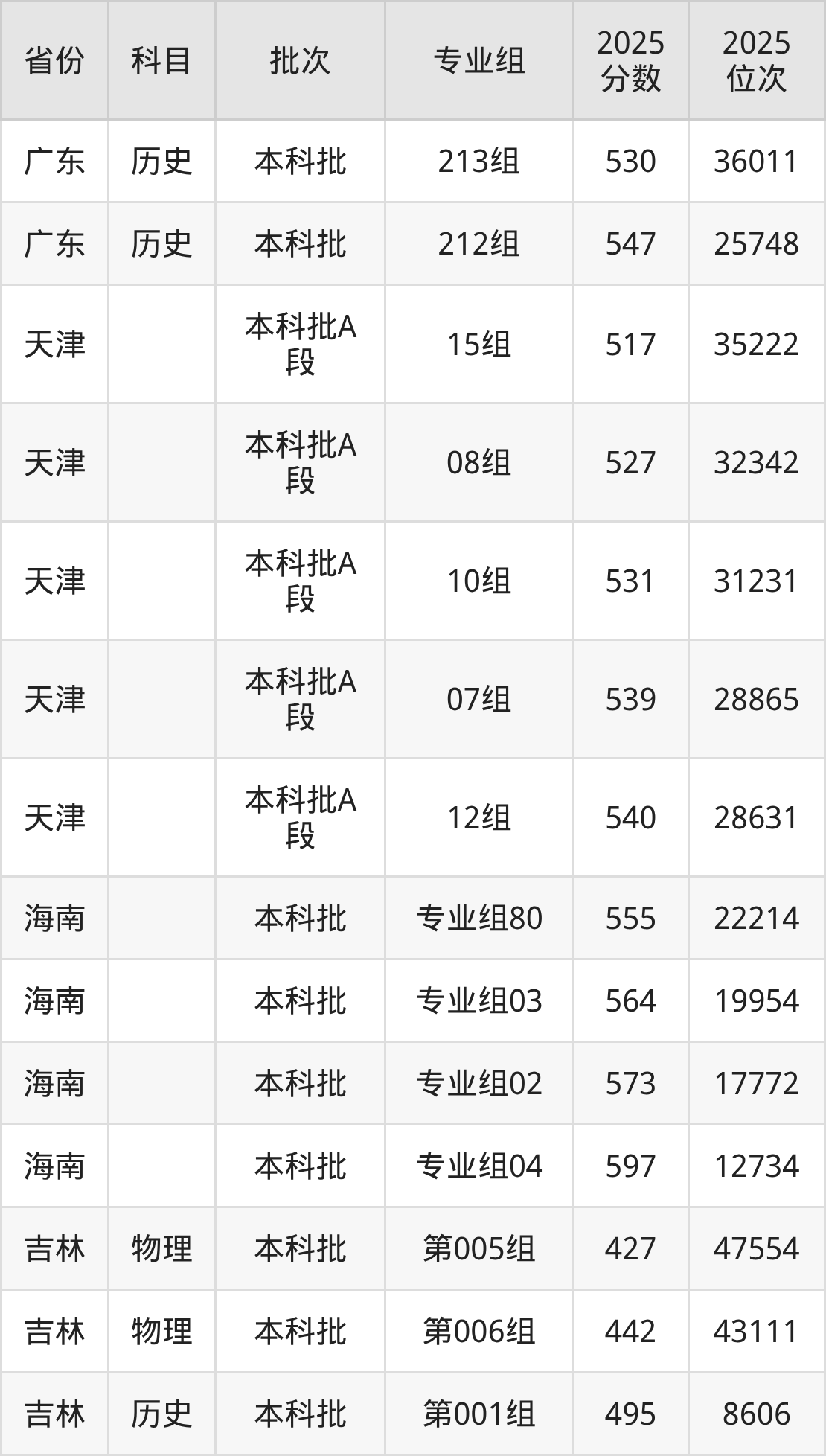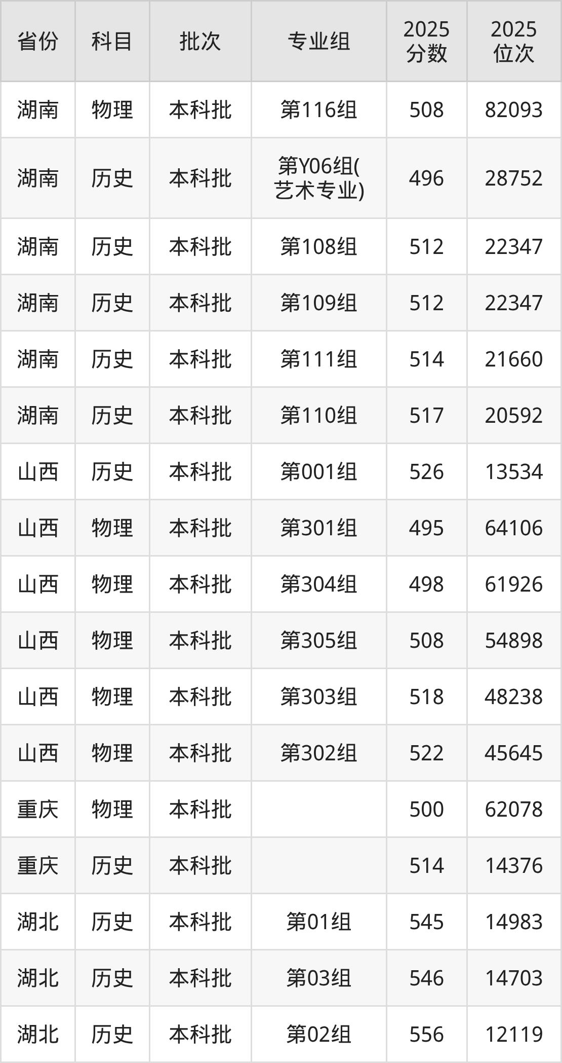 2025年投档录取最低分为510分,录取最低位次为18115名。