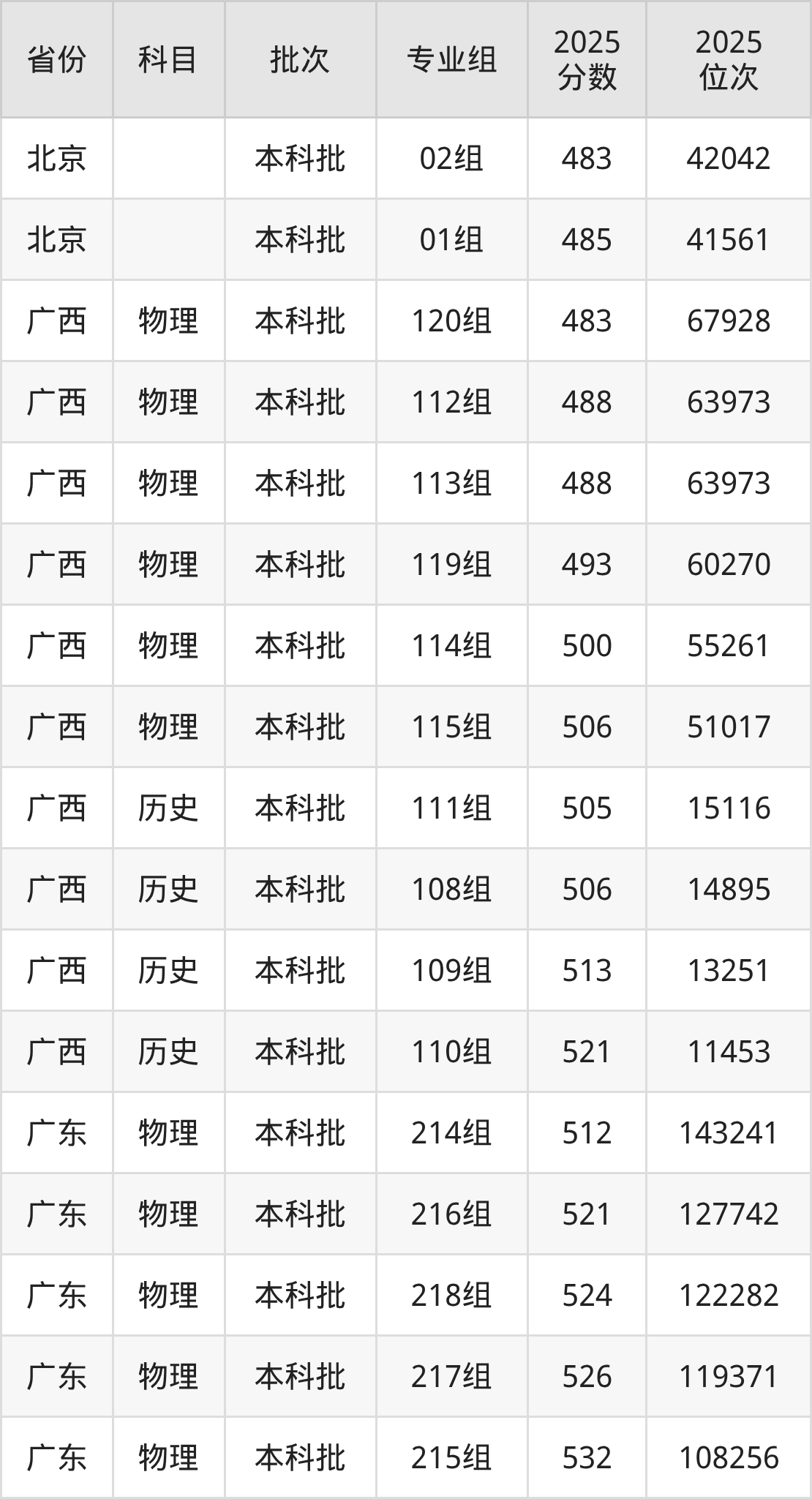2025年投档录取最低分为492分,录取最低位次为58643名。