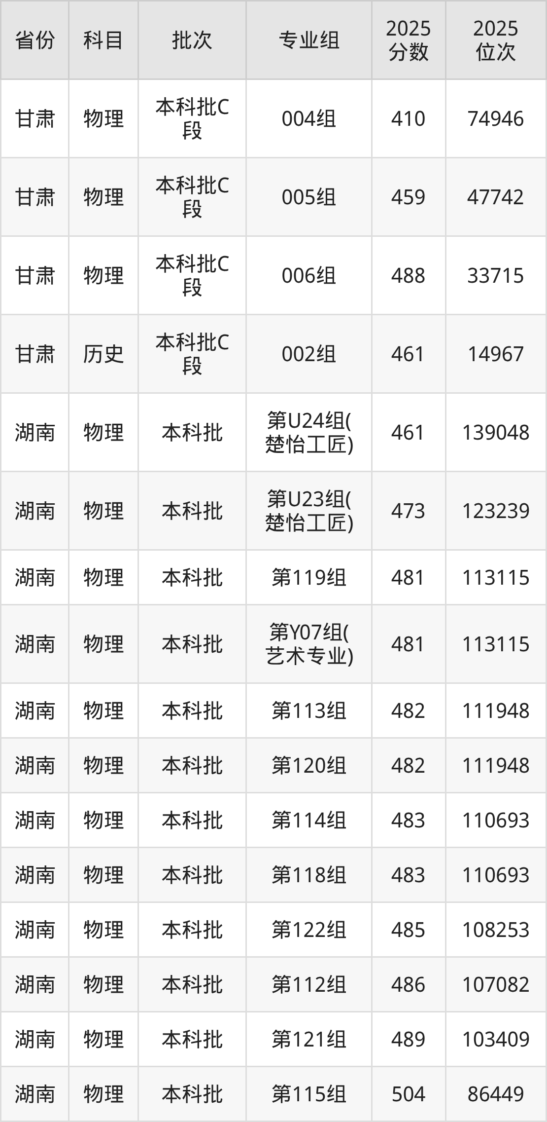 长沙学院115组:2025年投档录取最低分为506分,录取最低位次为51017名。